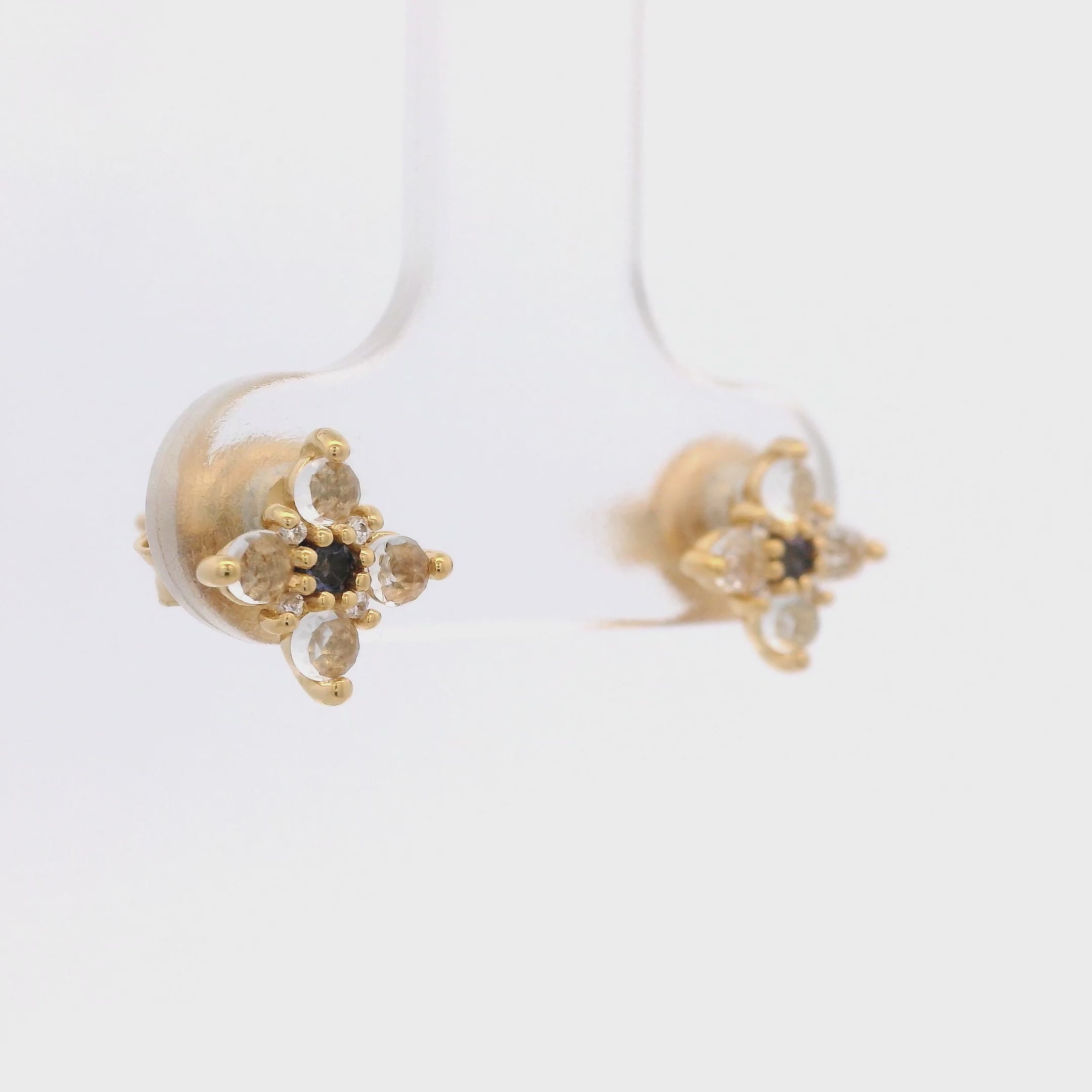 925YG MINI FLOWER TOPAZ WHITE CENTER IOLITE EARRINGS