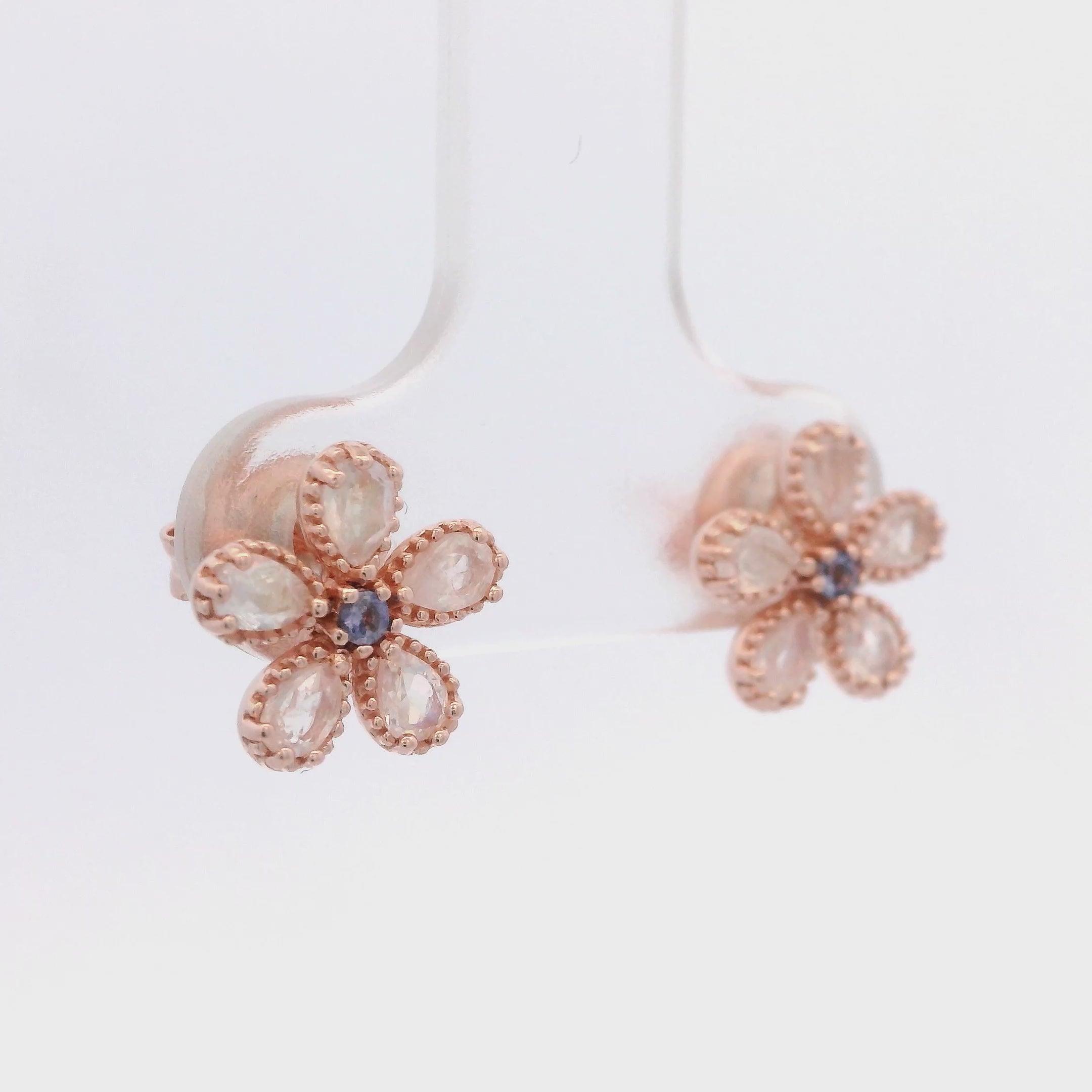925RG FLOWER MOONSTONE CENTER IOLITE EARRINGS