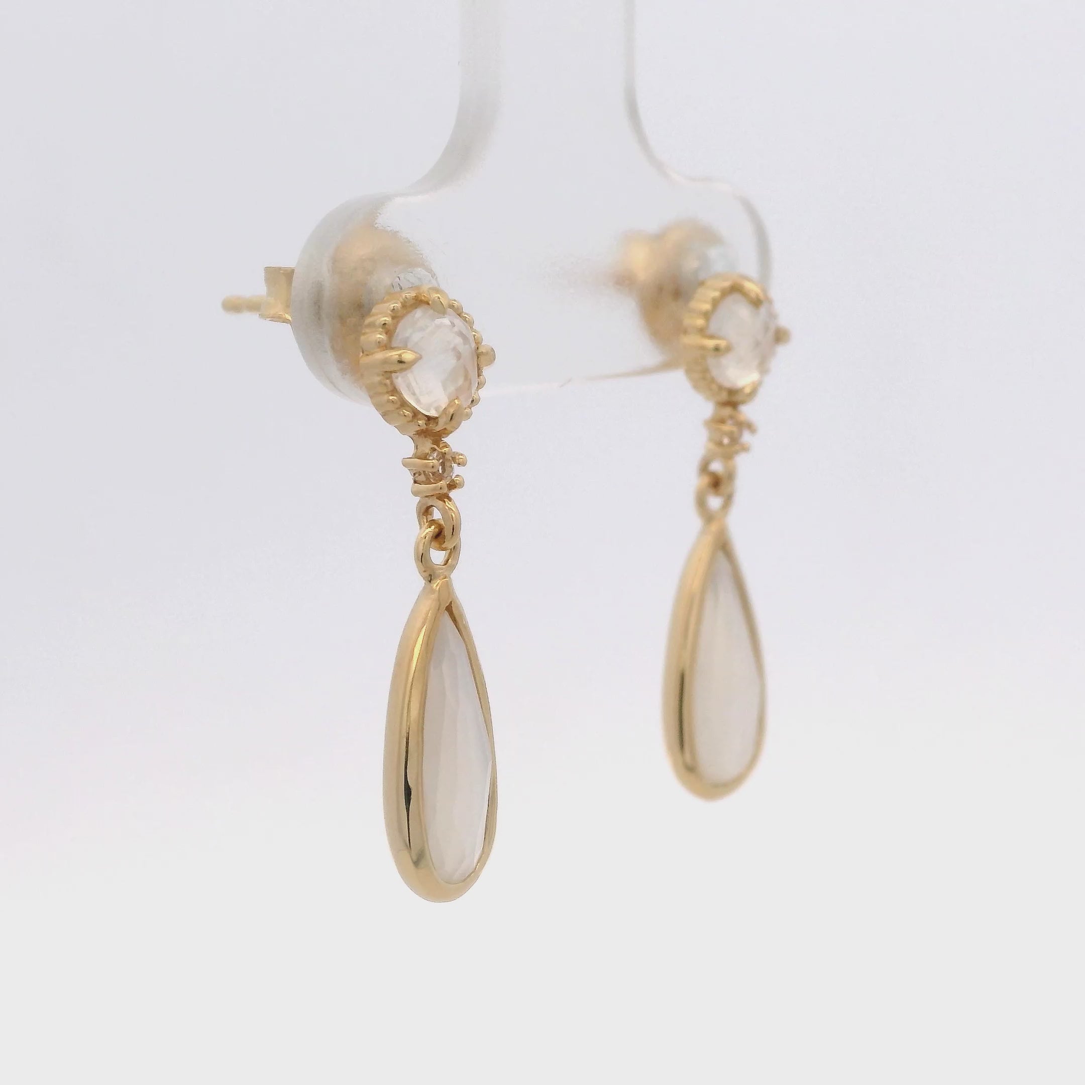 925YG STUD MOOSTONE DROP MOOSTONE WHITE EARRINGS