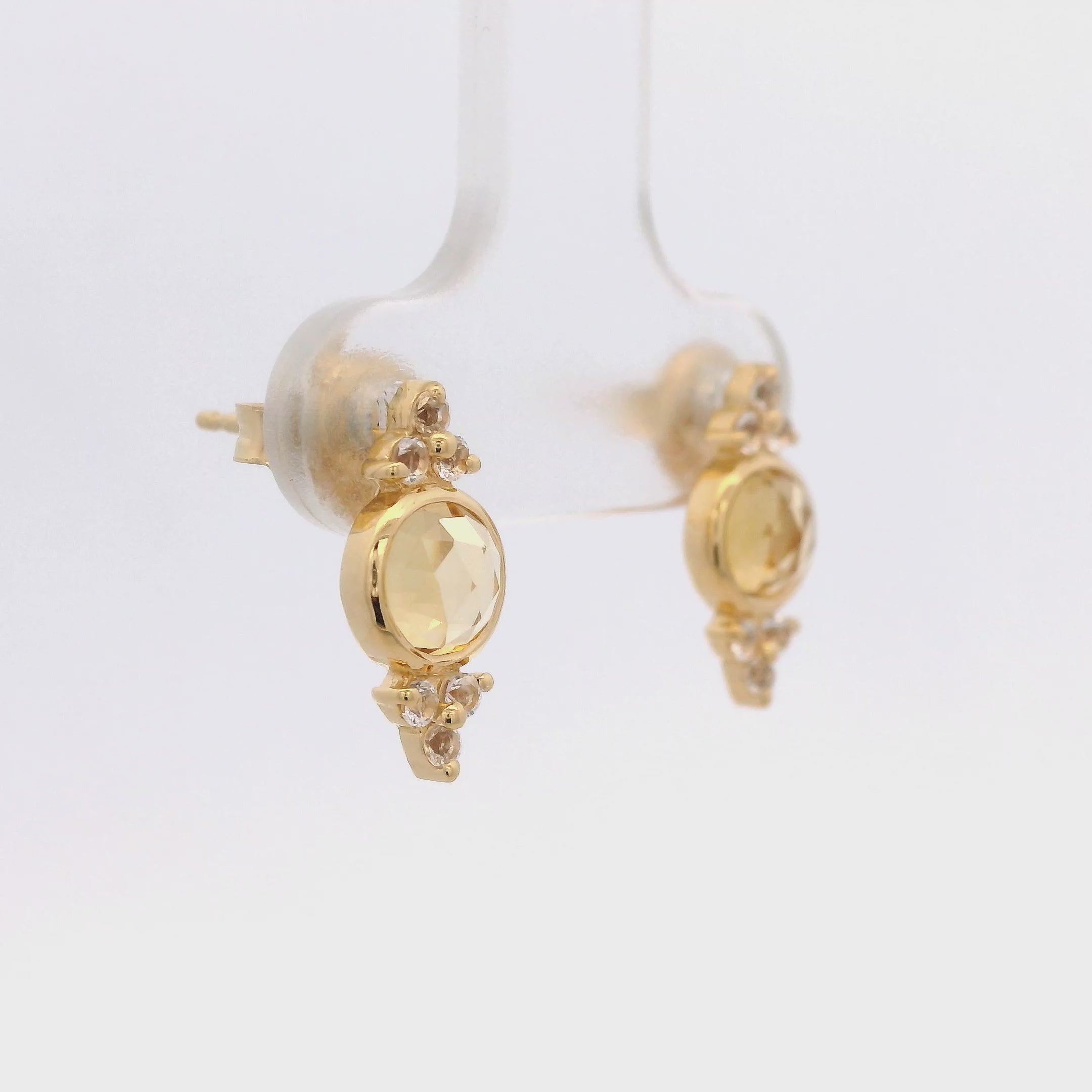 925YG BEZEL CITRINE WITH POINTS TOPAZ WHITE EARRINGS