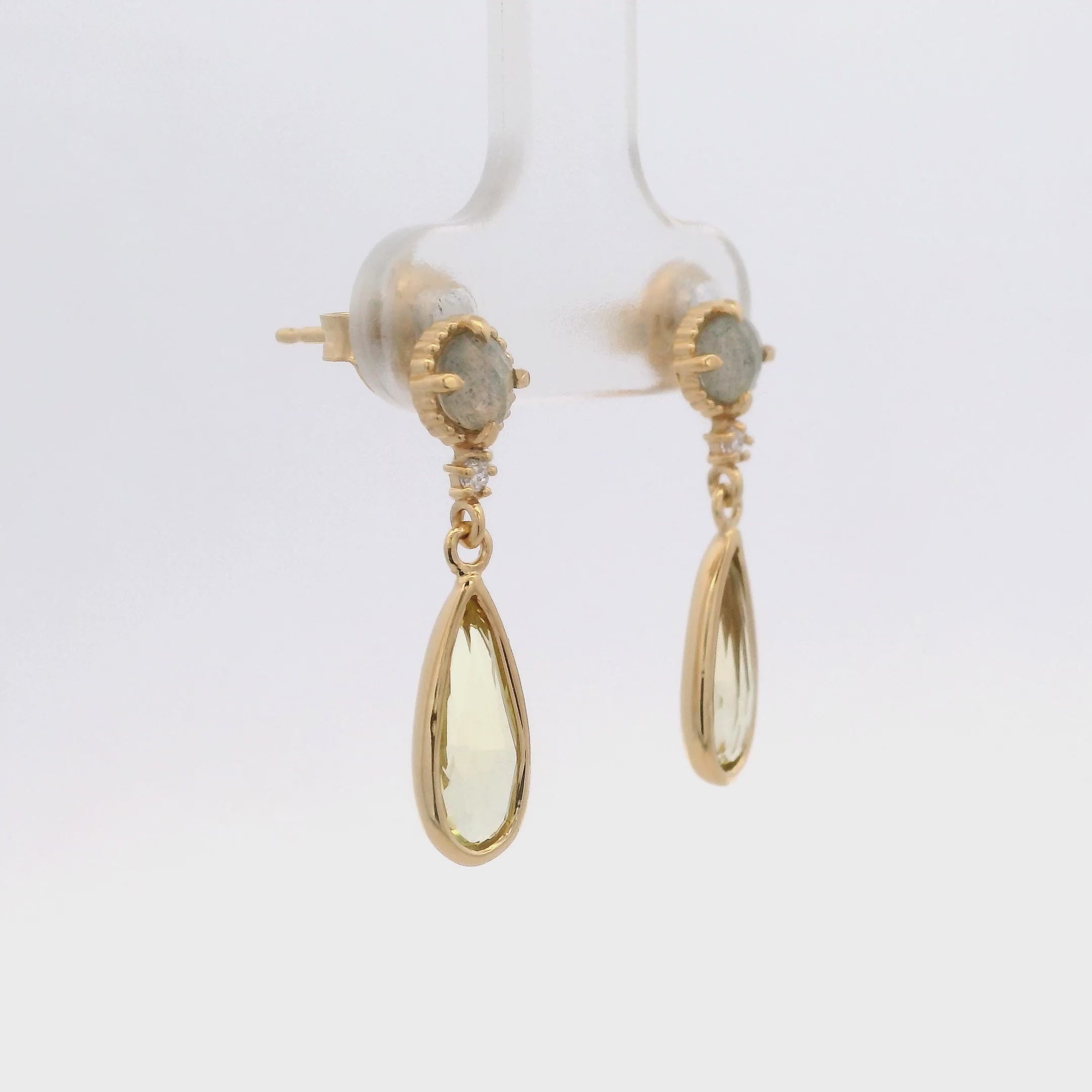 925YG STUD LABRADORITE DROP LEMON QUARTZ EARRINGS