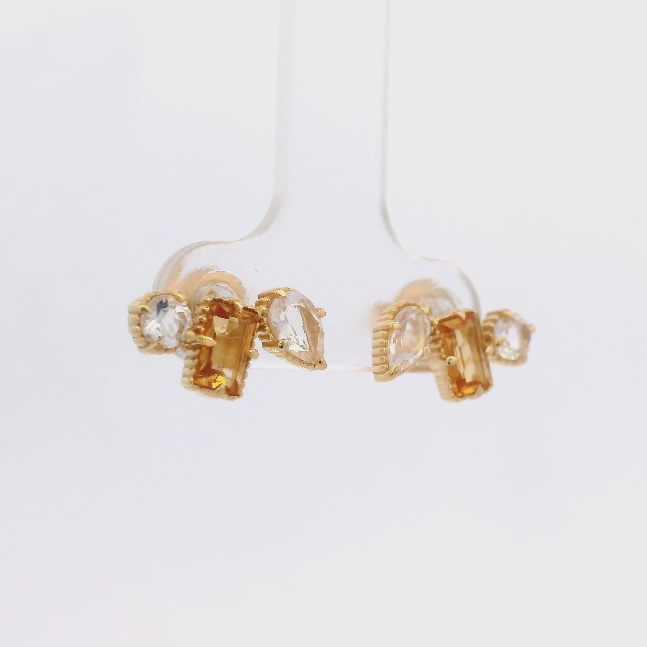925YG MULTI SHAPE CENTER CITRINE AND ROCK CRYSTAL EARRINGS