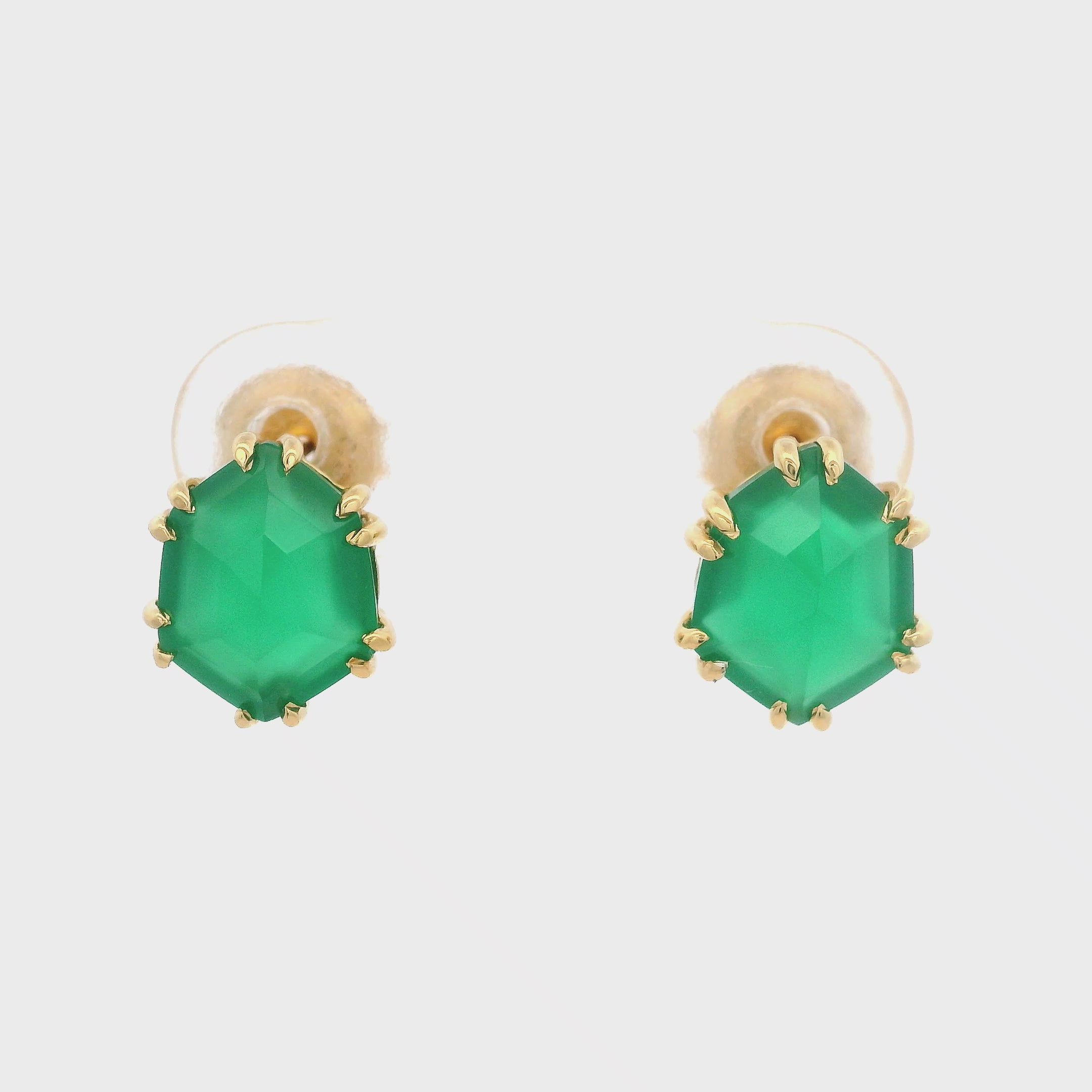 925YG HEXAGONAL ONYX GREEN EARRINGS