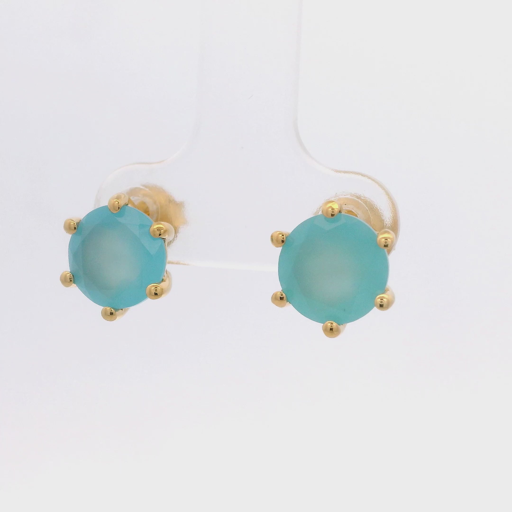 925YG ROUND BLUE CHALCEDONY SOLITARY EARRINGS