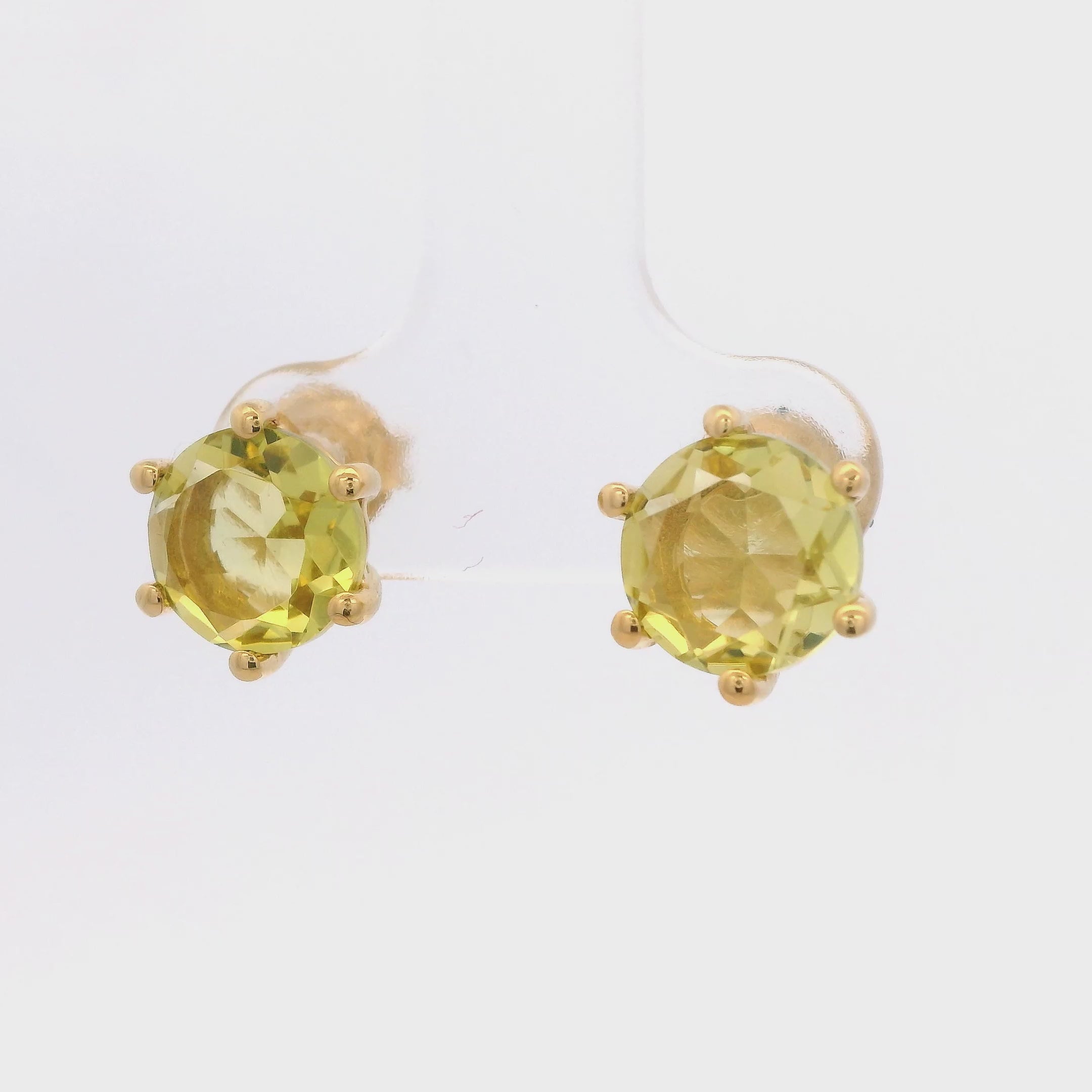 925YG ROUND LEMON QUARTZ SOLITARY EARRINGS
