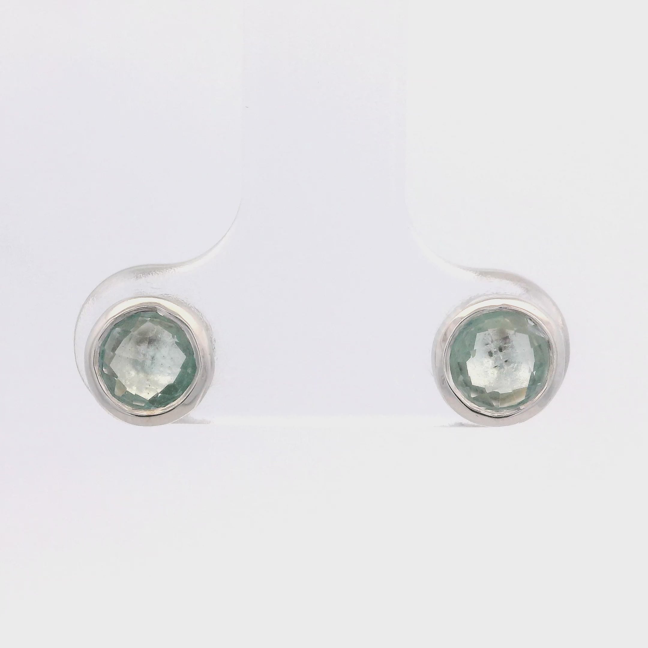 925SL BEZEL TOPAZ BLUE SOLITARY EARRINGS