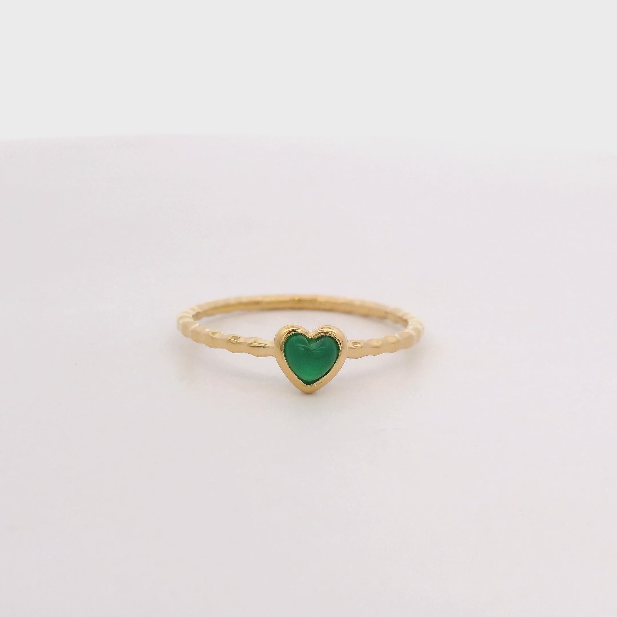 925YG MINI BEZEL HEART ONYX GREEN RING T6.5