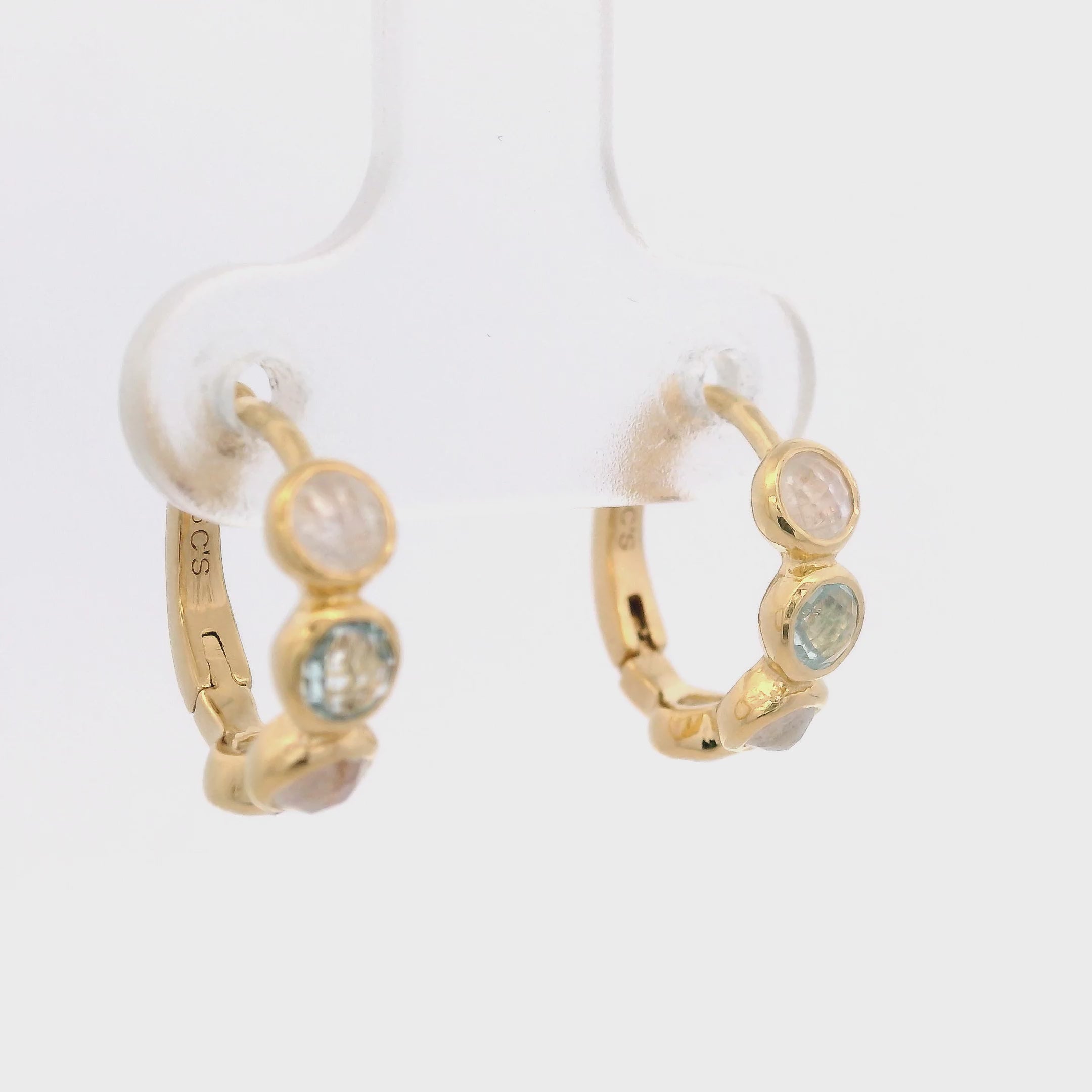 925YG FOUR STONE MOOSTONE AND TOPAZ BLUE HUGGIES