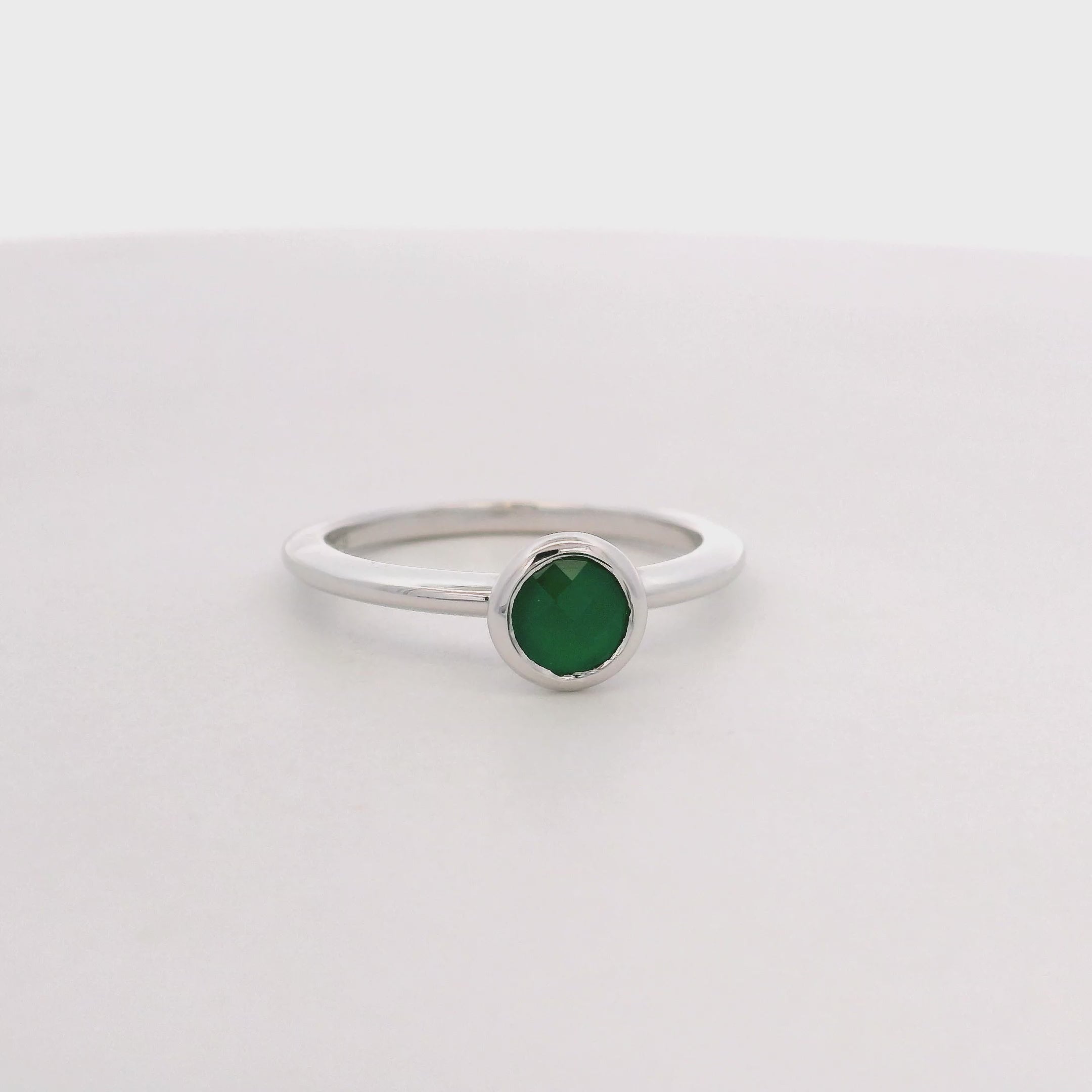 925SL BEZEL ONYX GREEN SOLITARY RING T6.5