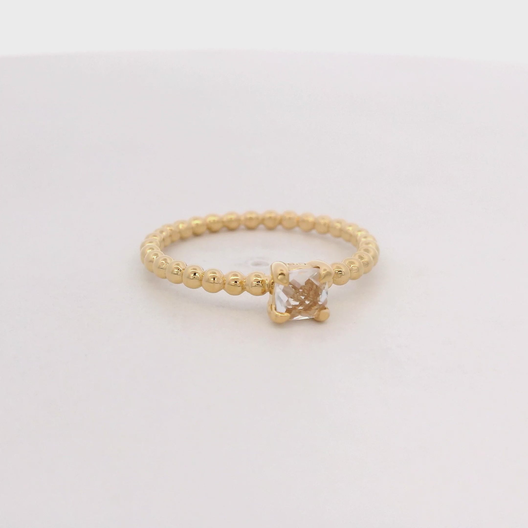 925YG BEANDS ROCK CRYSTAL SOLITARY RING T6.5
