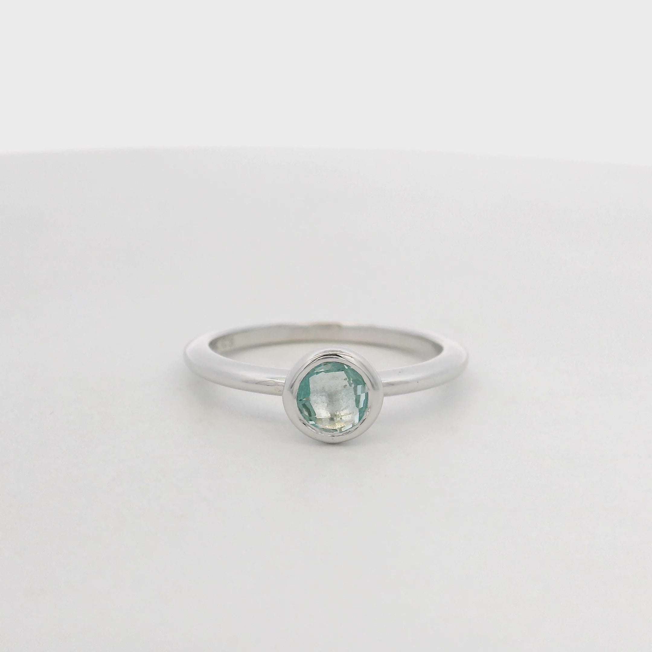925SL BEZEL TOPAZ BLUE SOLITARY RING T6.5