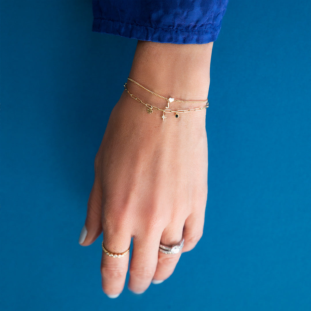 Once you have decided on the placement of your charms, our expert jeweler will carefully solder each one onto the 14K gold bracelet you selected. This process ensures that your charms stay secure and in place. Additionally, before finalizing, we will adjust the bracelet to fit your wrist perfectly, so you can wear it comfortably.