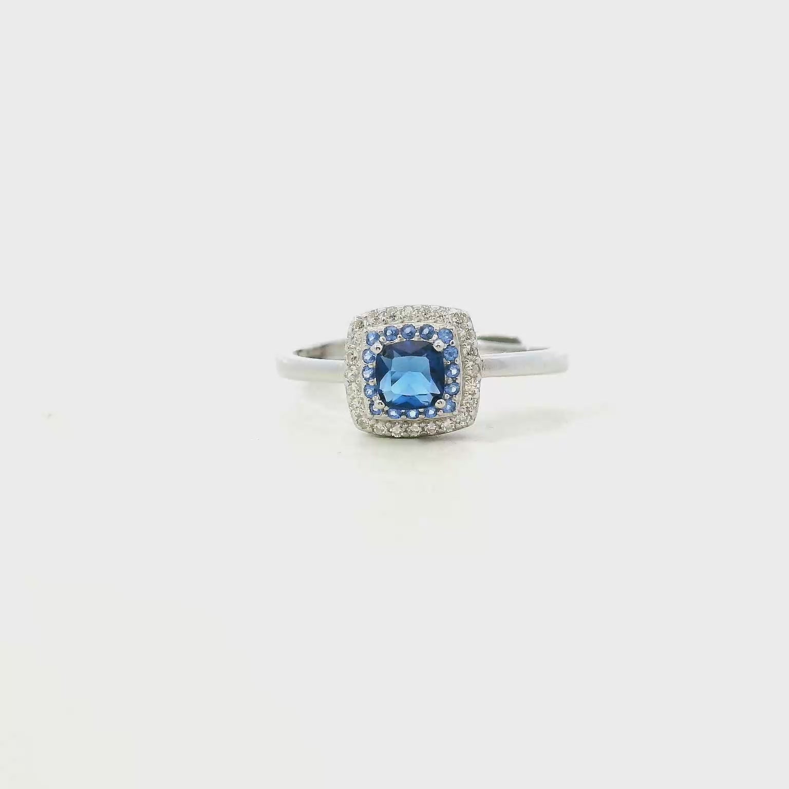 925SL SQUARE HALO CZ BLUE ADJUSTABLE RING