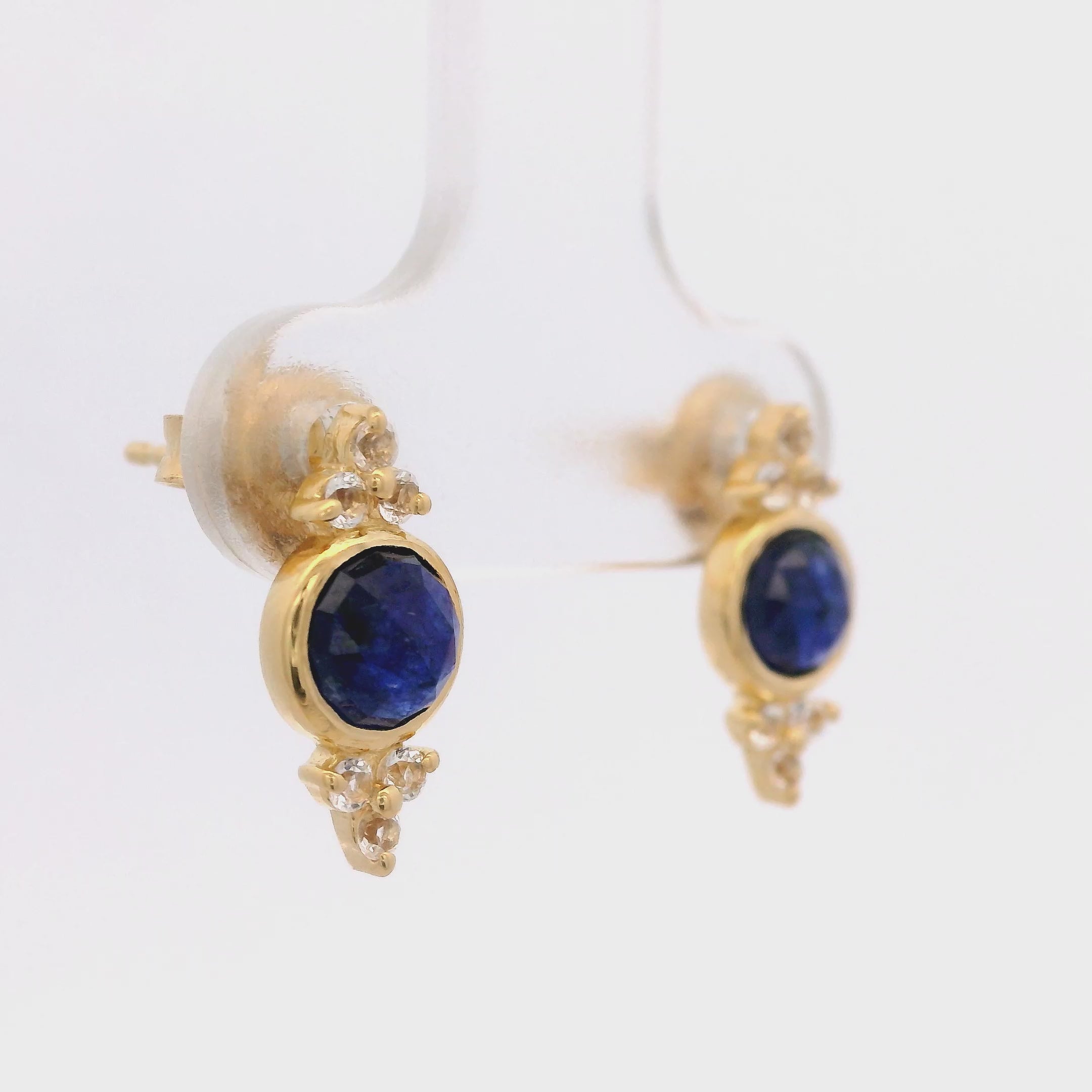 Aretes de Zafiro con Relleno de Vidrio y Puntas de Topacio Blanco en Plata 925 Bañada en Oro.
