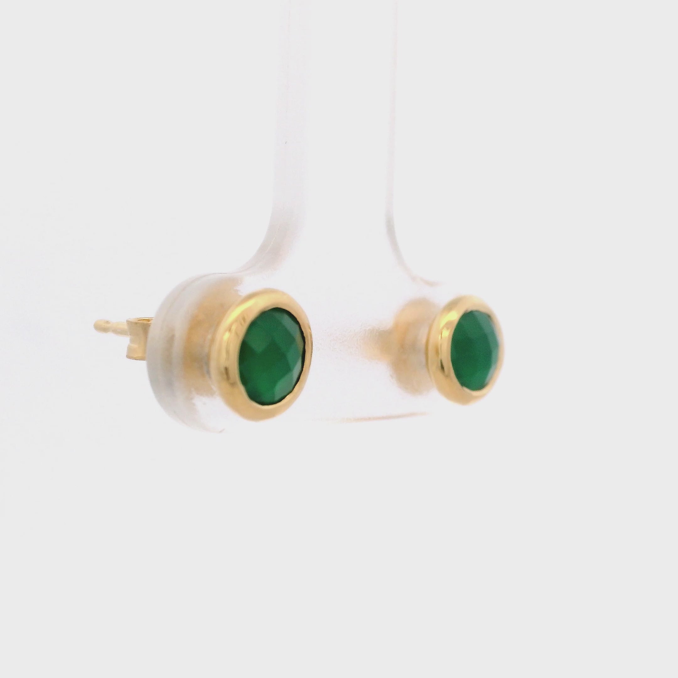 Aretes Solitarios de Ónix Verde con Engaste de Bisel en Plata 925 Bañada en Oro.