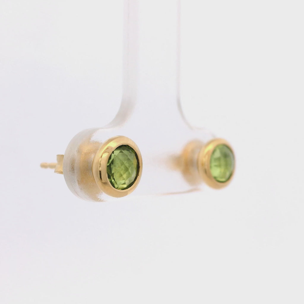 Aretes Solitarios de Peridoto con Engaste de Bisel en Plata 925 Bañada en Oro.