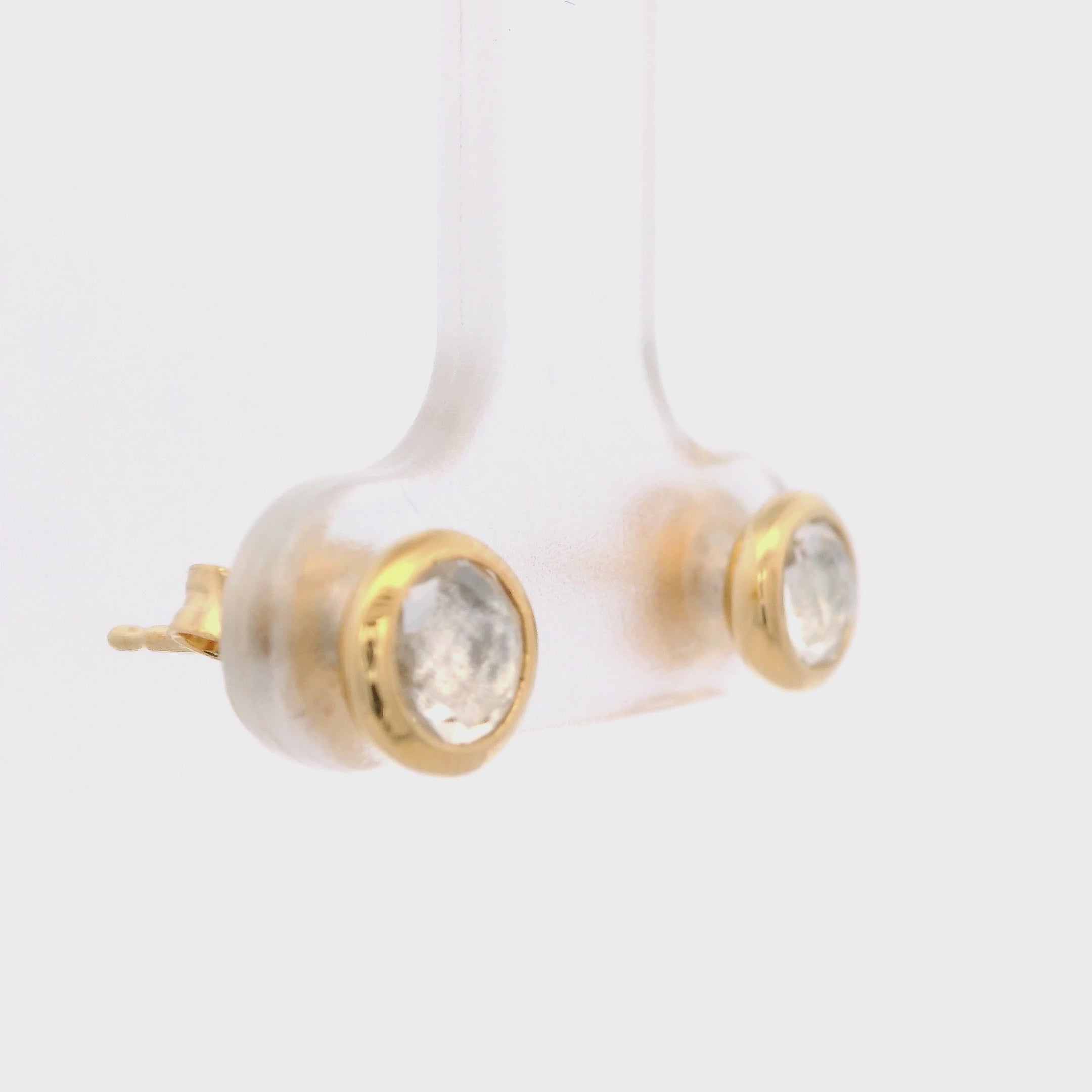925YG BEZEL ROCK CRYSTAL SOLITARY EARRINGS