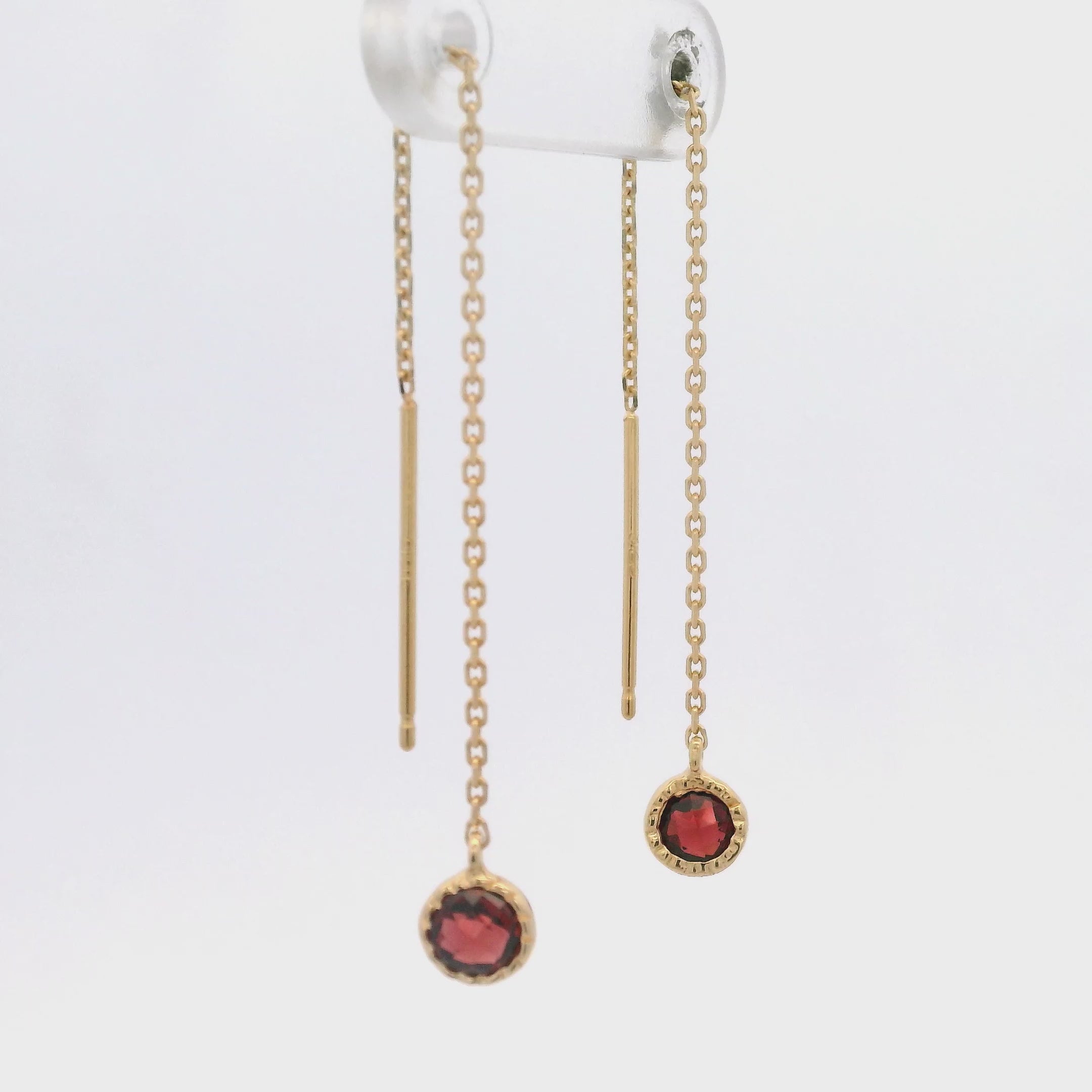 Aretes Solitarios de Granate con Engaste de Bisel en Plata 925 Bañada en Oro.