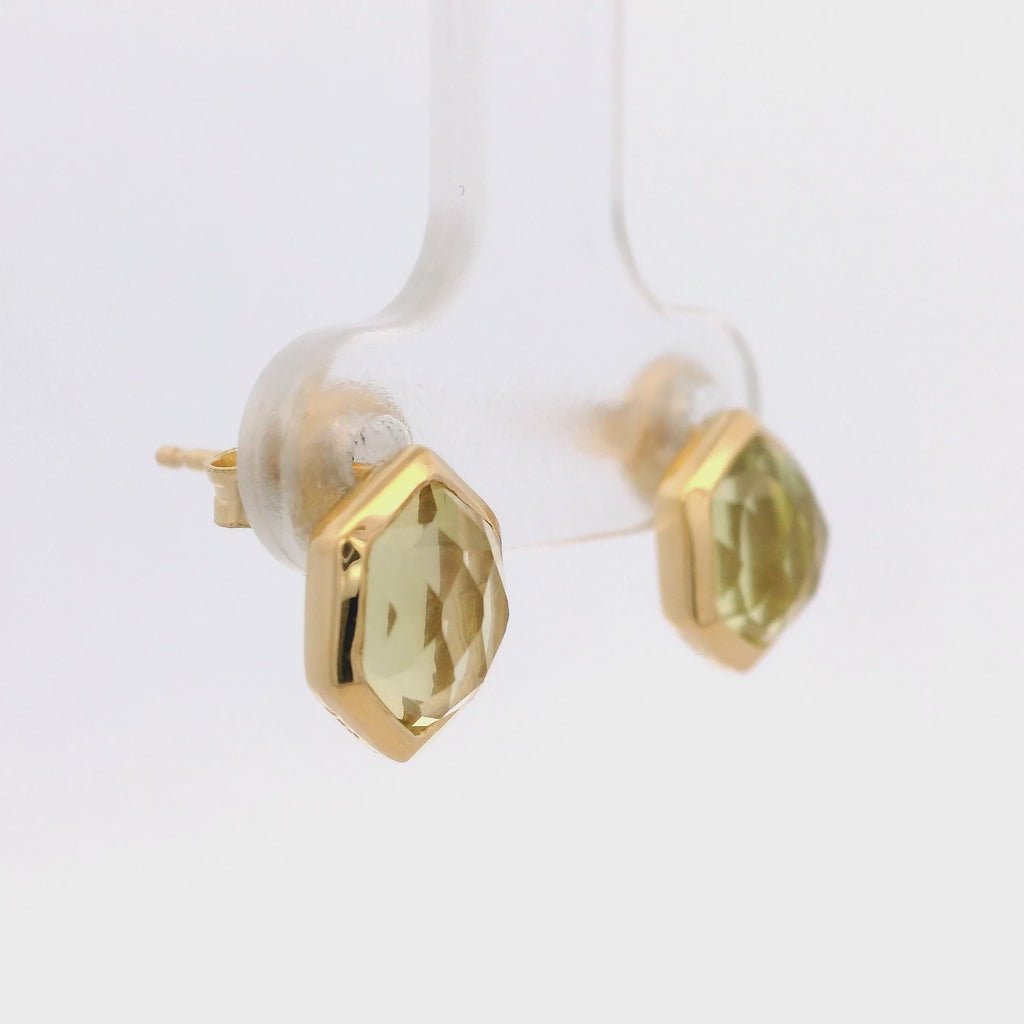 925YG HEXAGONAL LEMON QUARTZ EARRINGS