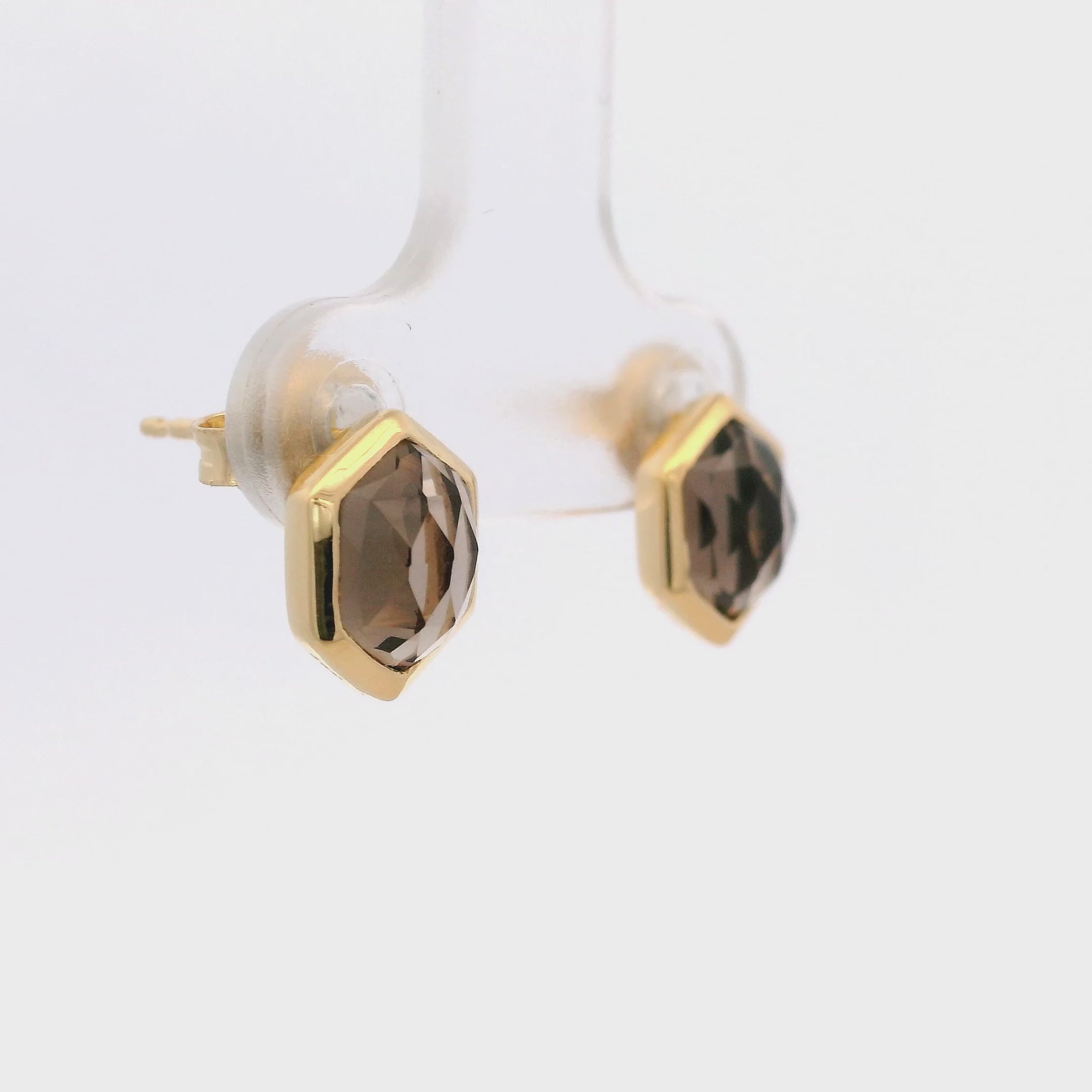 925YG HEXAGONAL SMOKY QUARTZ EARRINGS