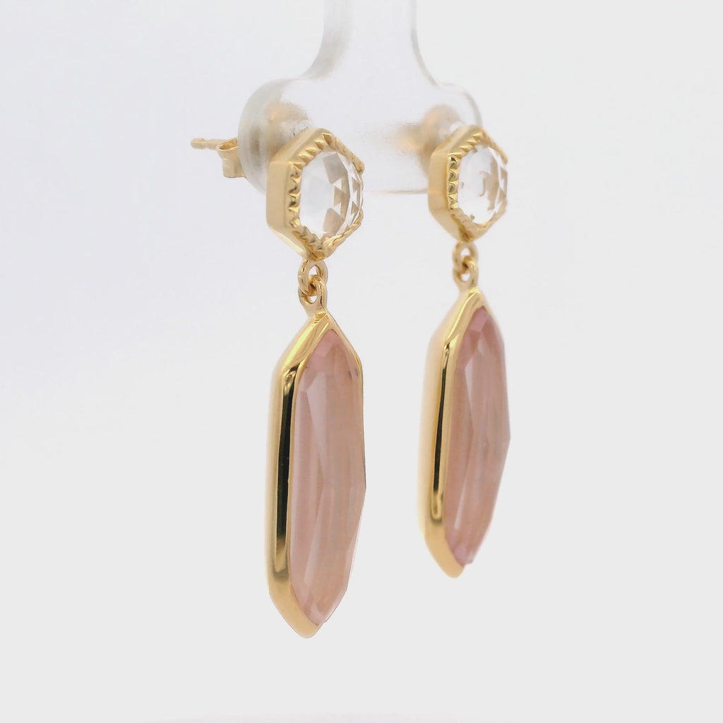 925YG STUD RIOCK CRYSTAL AND HEXAGONAL ROSE QUARTZ EARRINGS