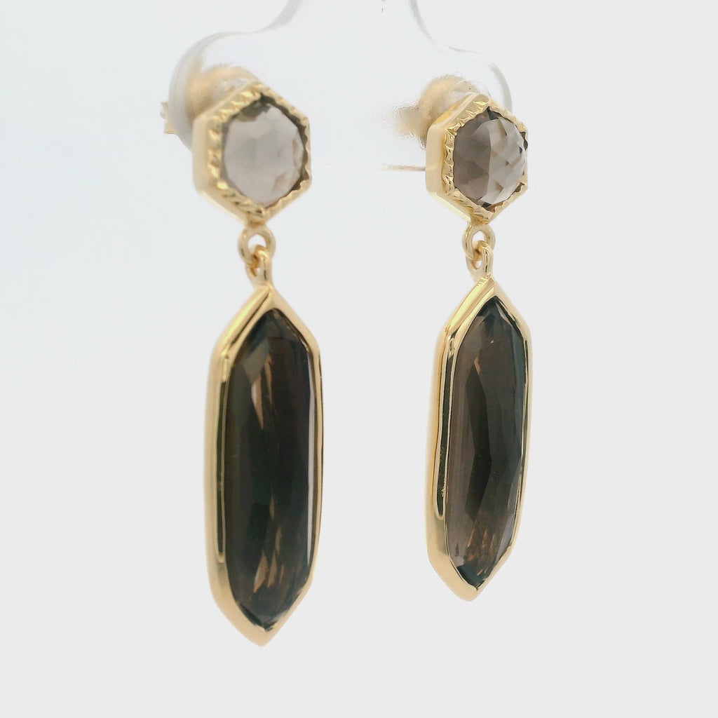 925YG STUD SMOKY QUARTZ AND HEXAGONAL SMOKY QUARTZ EARRINGS