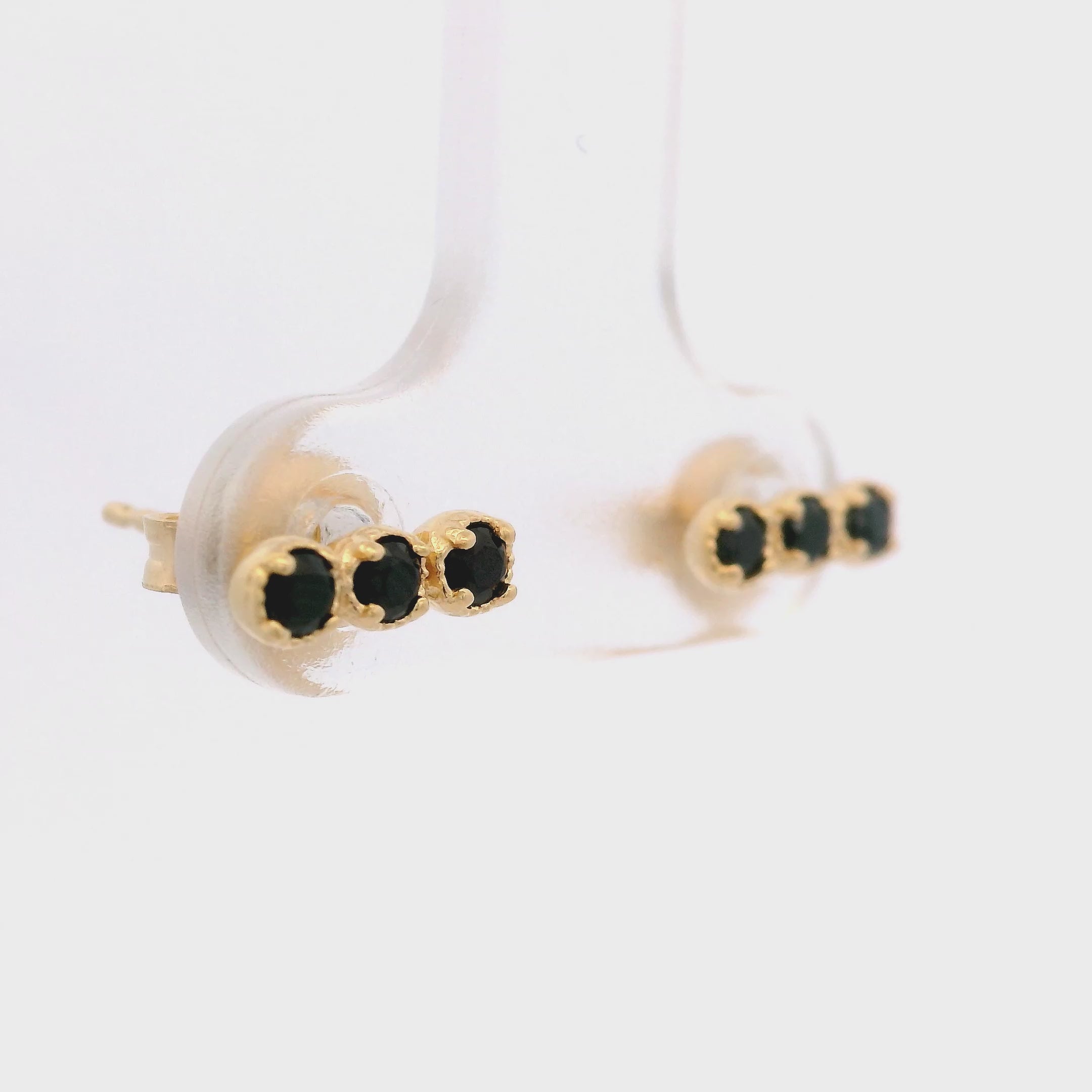 Aretes Mini en Forma de Barra con 3 Espinelas Negras en Plata 925 Bañada en Oro.
