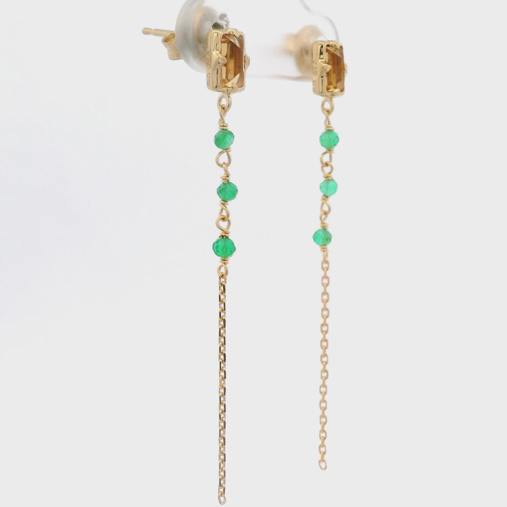 925YG MINI BAGUETTE CITRINE CHAIN BEANDS ONYX EARRINGS