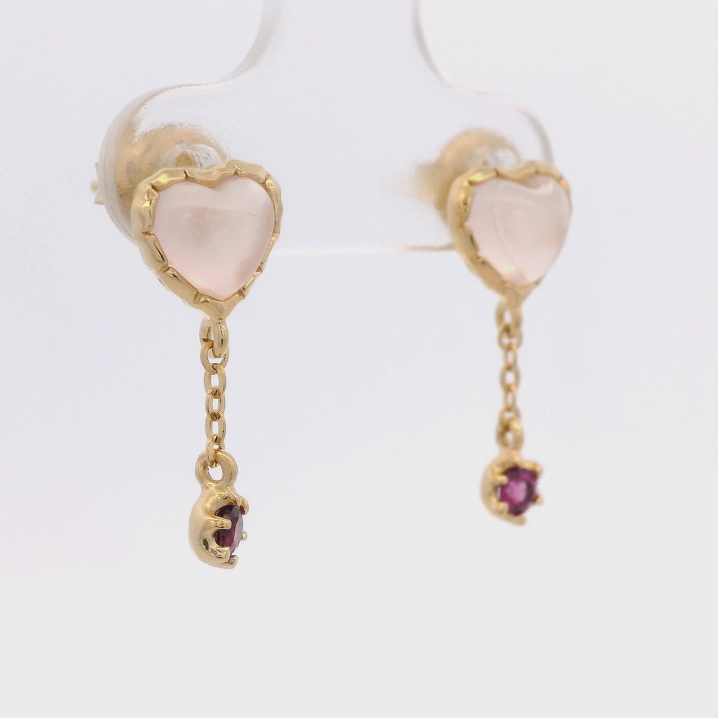 925YG HEART ROSE QUARTZ CHAIN RHODOLITE GARNET EARRINGS