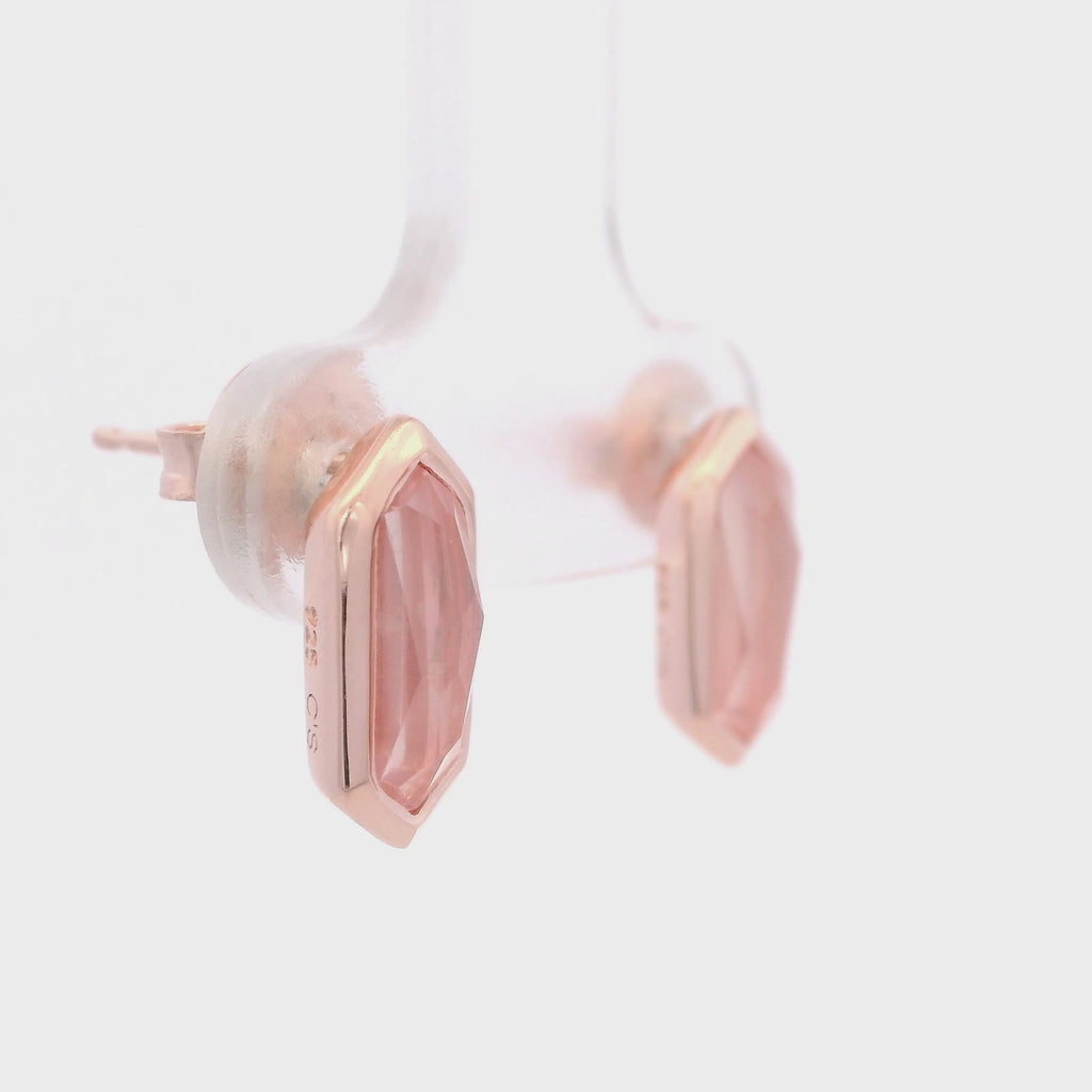 925RG HEXAGONAL ROSE QUARTZ EARRINGS