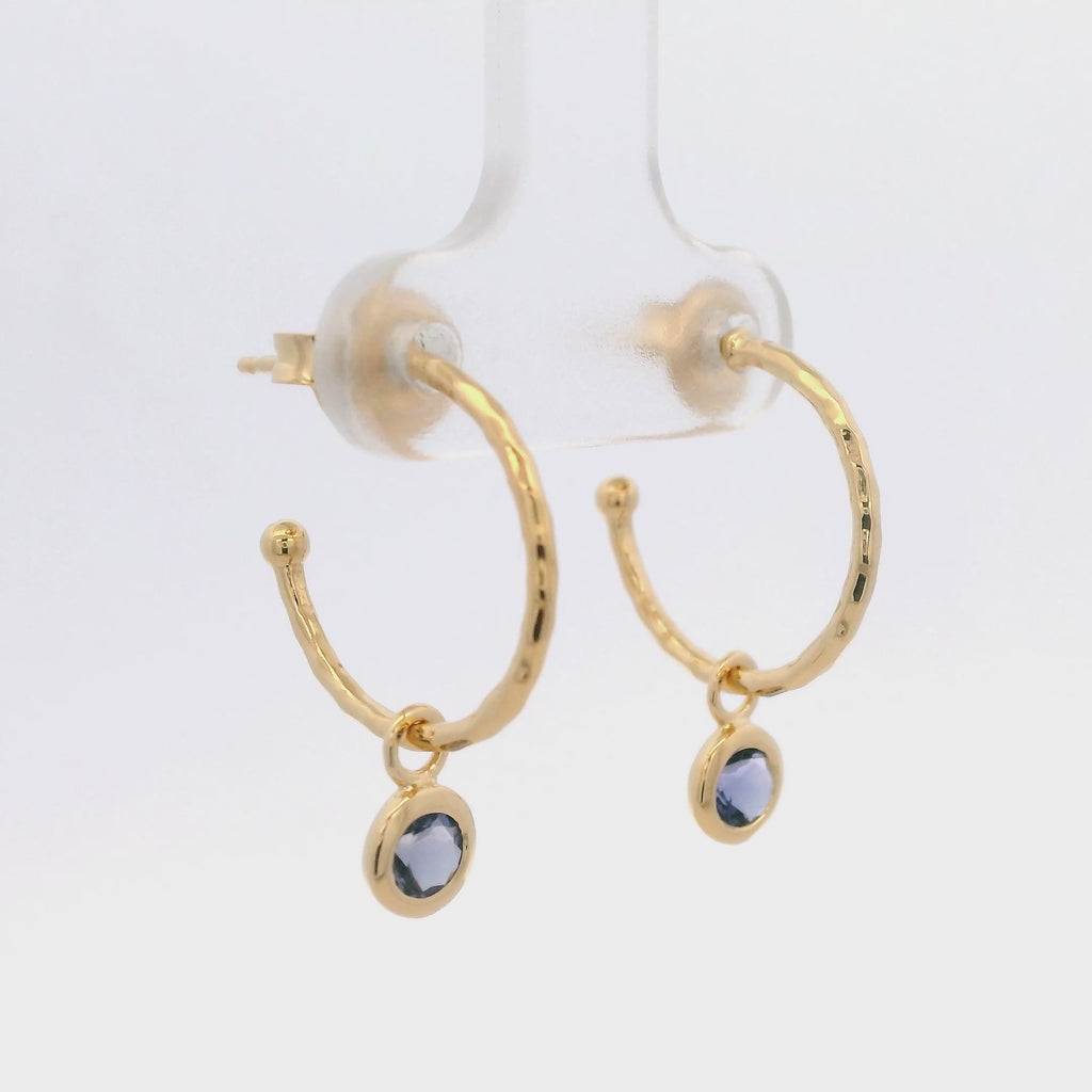 Huggies Solitarios de Iolita con Engaste de Bisel en Plata 925 Bañada en Oro.