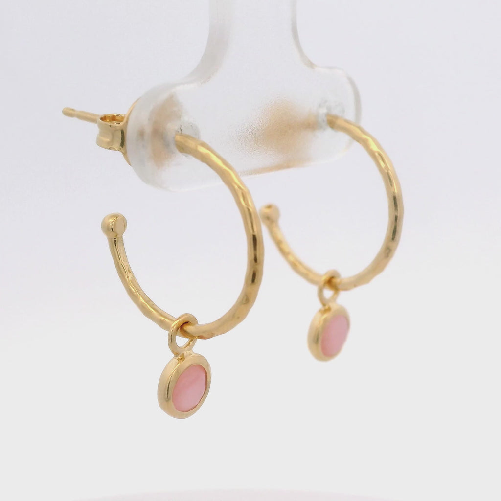 Huggies Solitarios de Ópalo Rosa con Engaste de Bisel en Plata 925 Bañada en Oro.