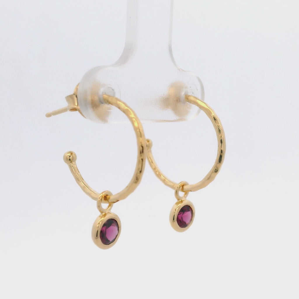 Huggies Solitarios de Granate Rodolita con Engaste de Bisel en Plata 925 Bañada en Oro.