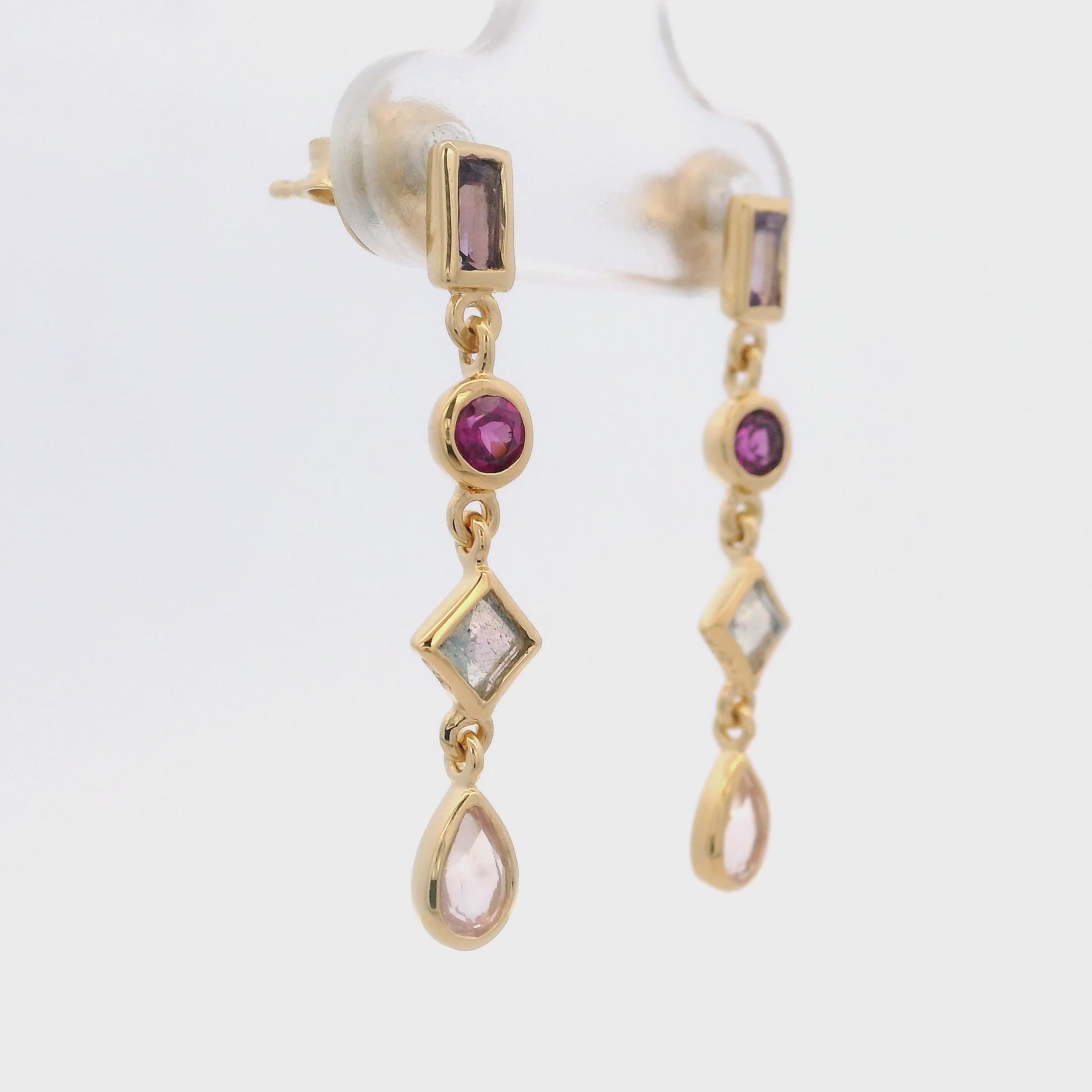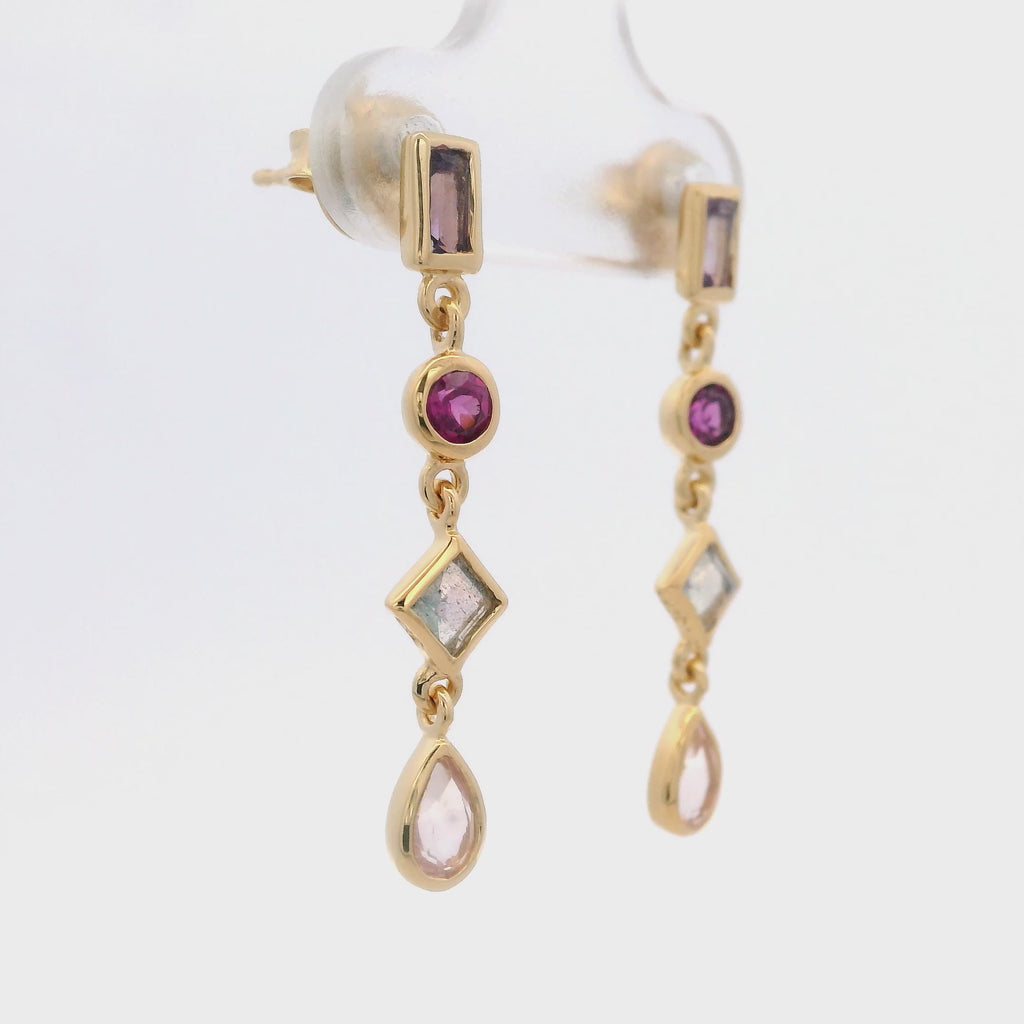 Diseño: Aretes que combinan varias piedras preciosas cortadas en diferentes formas (multi shape).