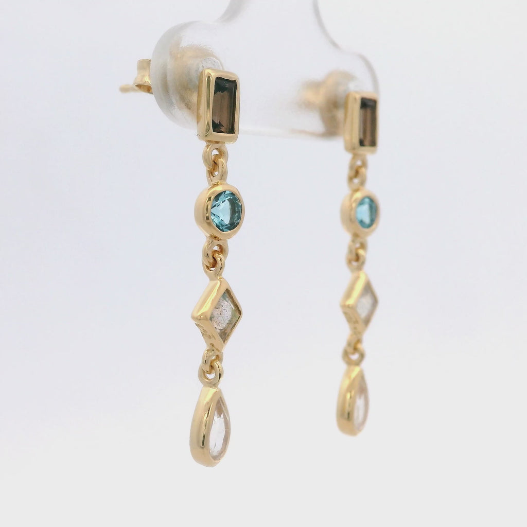 925YG MULTI SHAPE SMOKY QUARTZ LABRADORITE EARRINGS