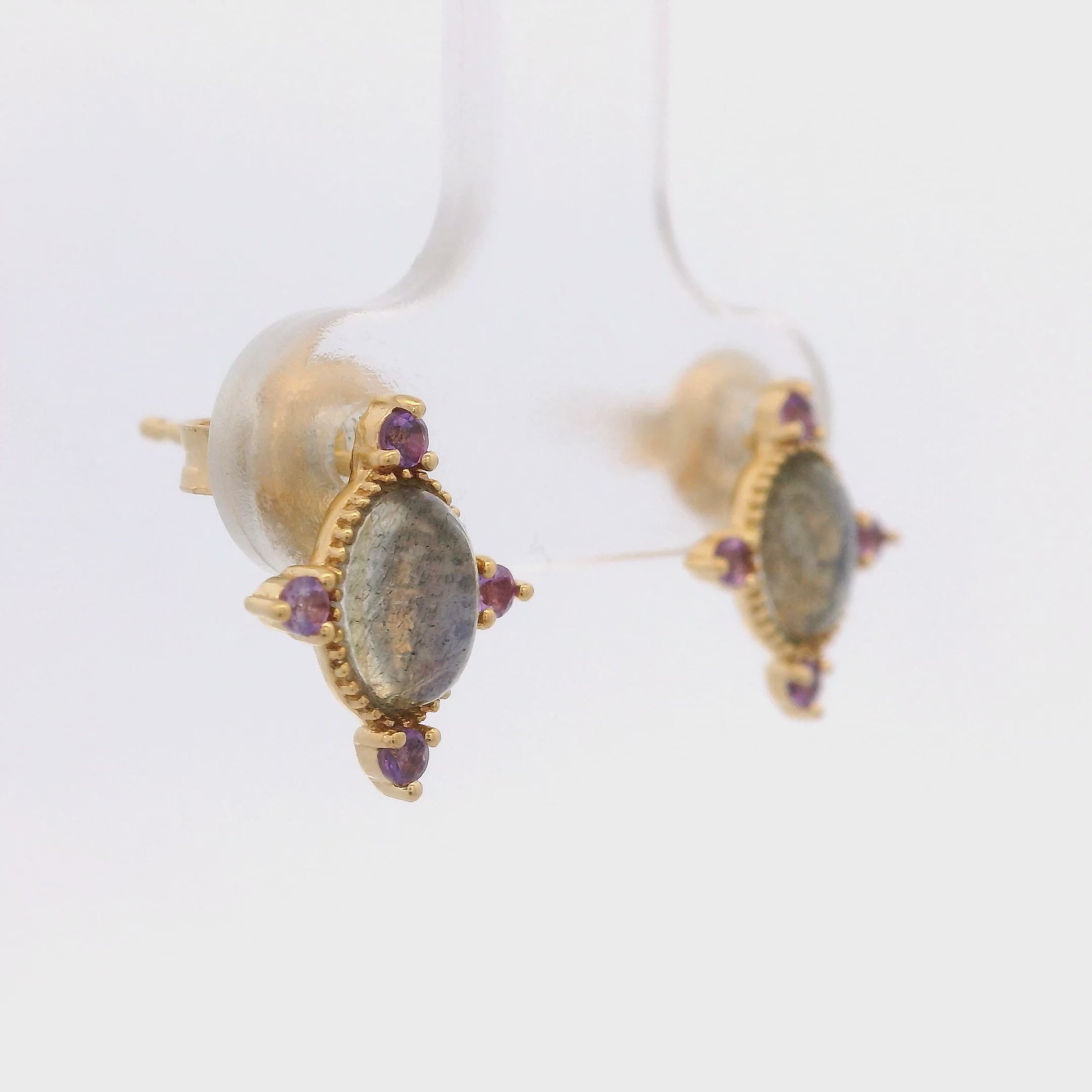 925YG OVAL LABRADORITE 4 POINTS AMETHYST EARRINGS