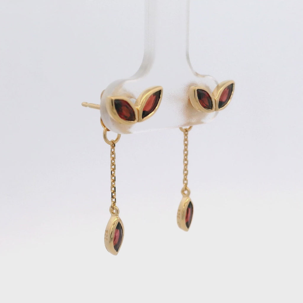 925YG MARQUESITE GARNET CHAIN EARRINGS