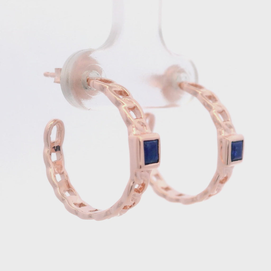 Huggies de Eslabón Cubano con Lapislázuli Cuadrado en Plata 925 Bañada en Oro Rosa.