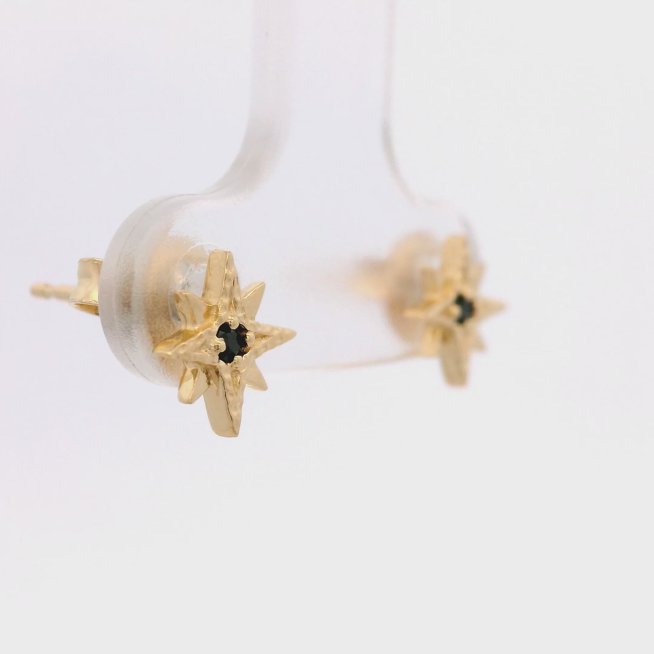 Aretes de Estrella del Norte con Espinela Negra en Plata 925 Bañada en Oro.