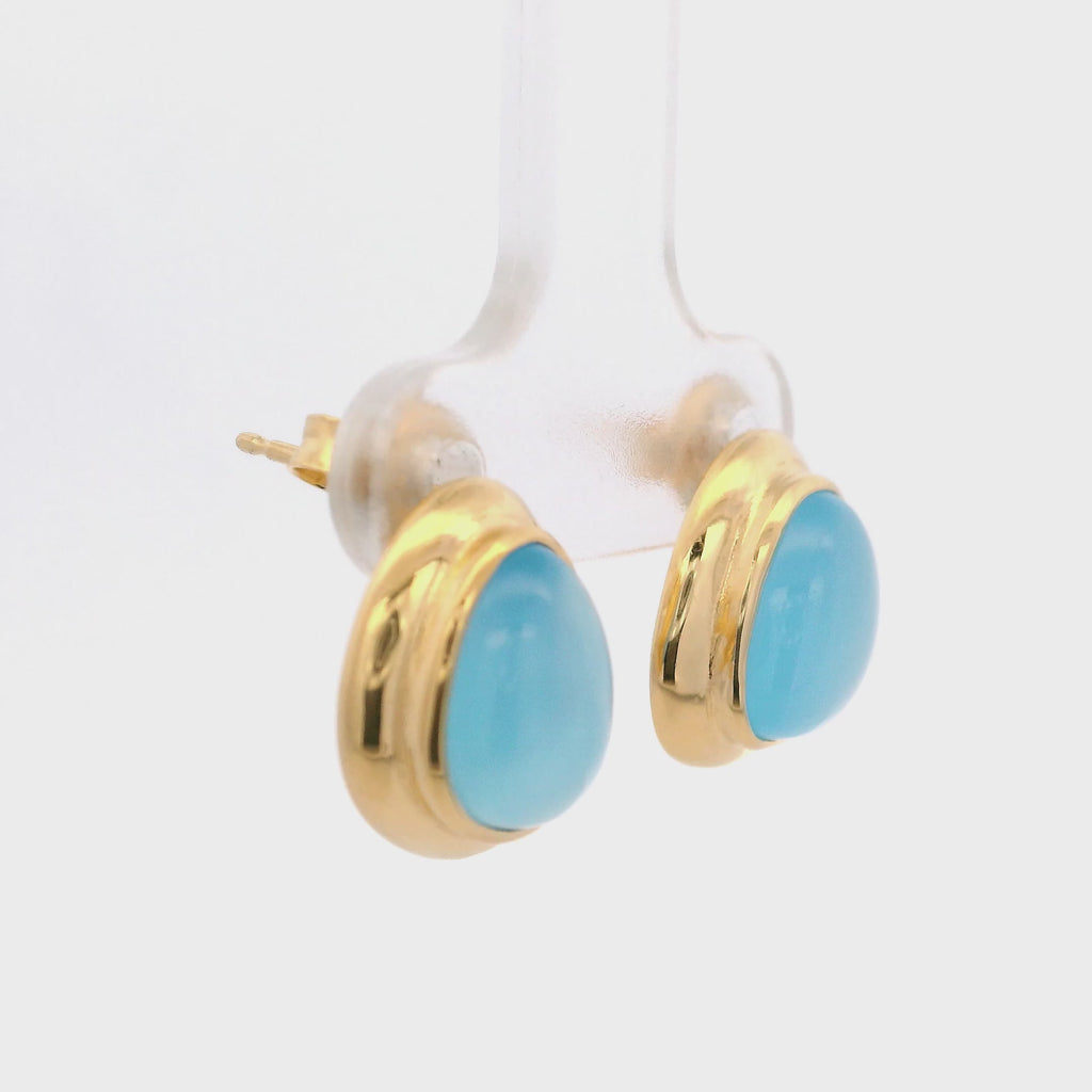 925YG CHUNKY DROP CHALCEDONY BLUE EARRINGS