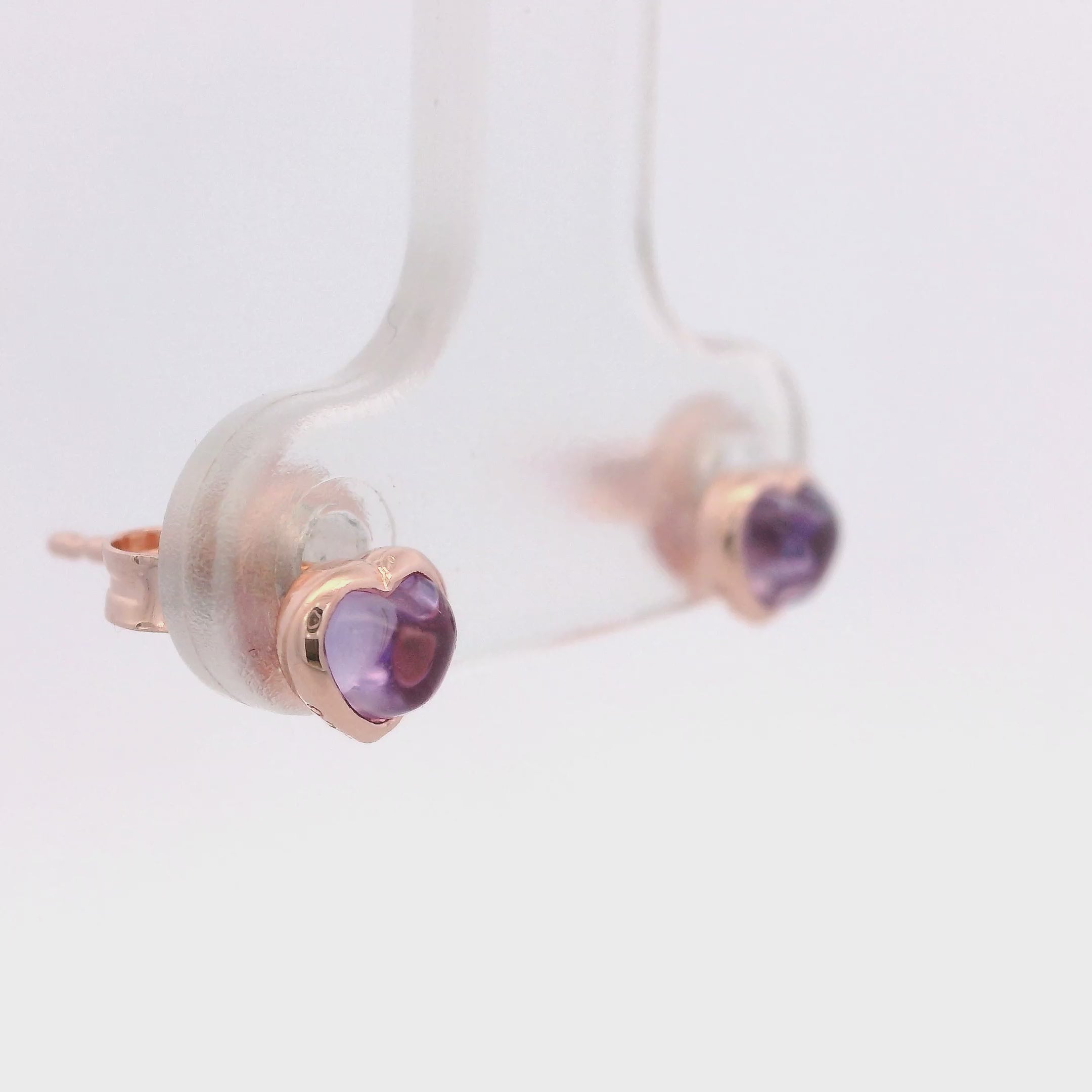 Mini Aretes de Amatista en Corazón con Engaste de Bisel en Plata 925 Bañada en Oro Rosa.