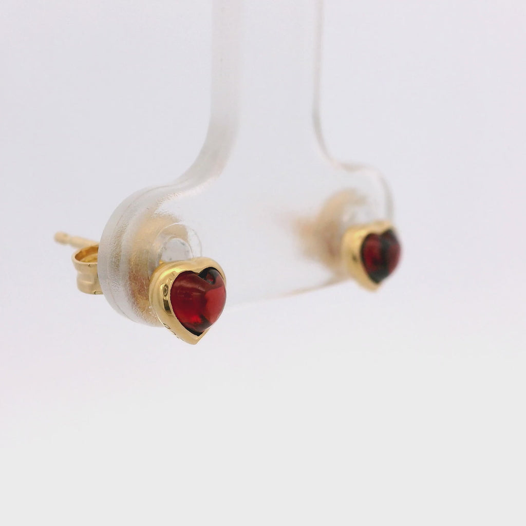 Mini Aretes de Corazón de Granate con Bisel en Plata 925 Bañada en Oro.