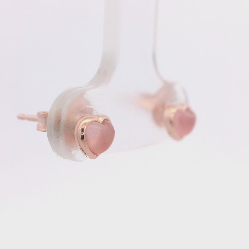 Mini Aretes de Corazón de Cuarzo Rosa con Bisel en Plata 925 Bañada en Oro Rosa.