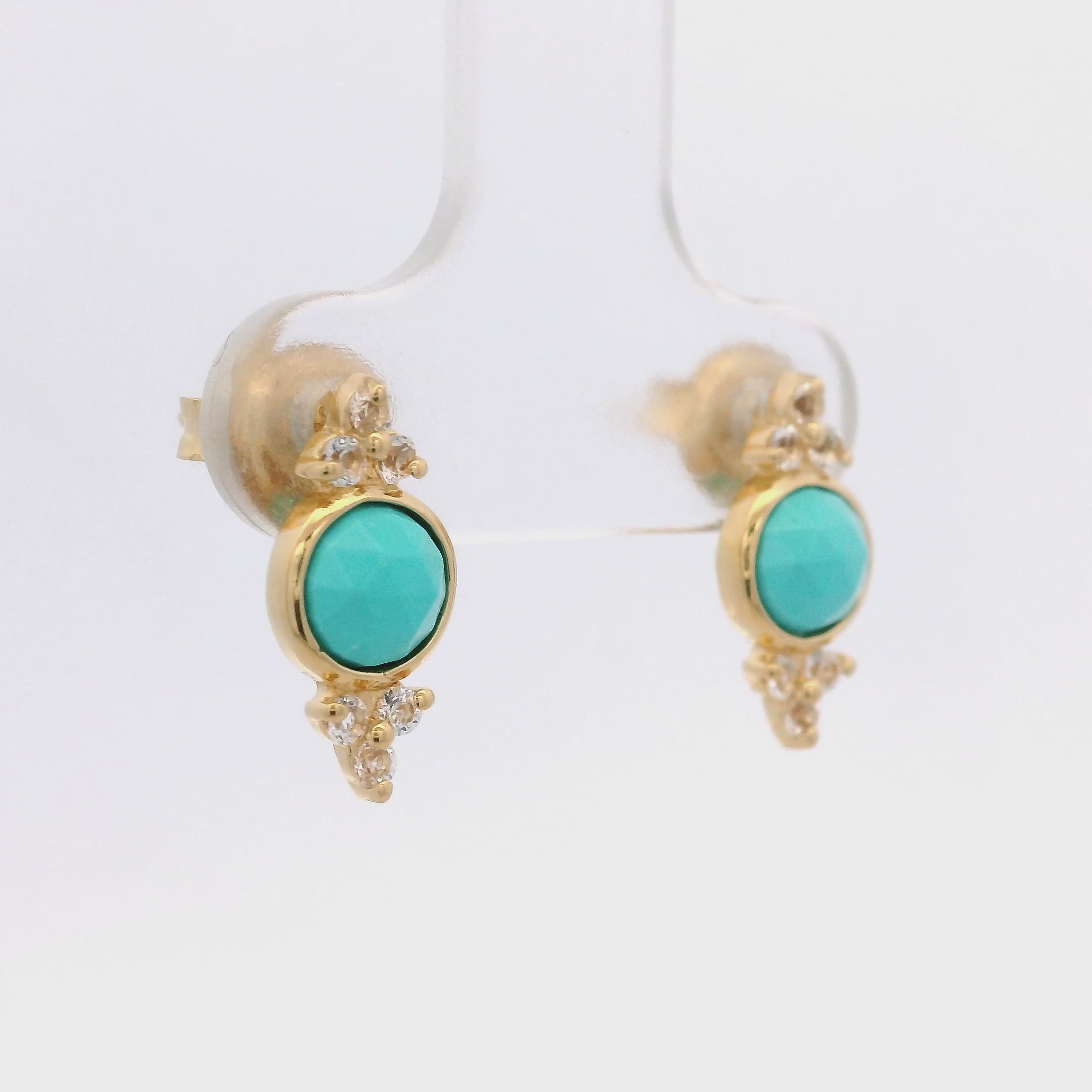 Aretes de Turquesa Sintética con Engaste de Bisel y Puntas de Topacio Blanco en Plata 925 Bañada en Oro.