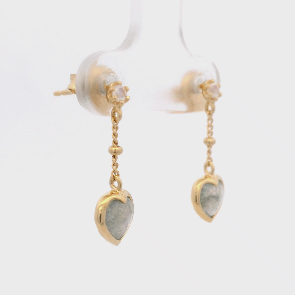 Aretes de Cadena con Corazón de Labradorita y Engaste de Bisel en Plata 925 Bañada en Oro.