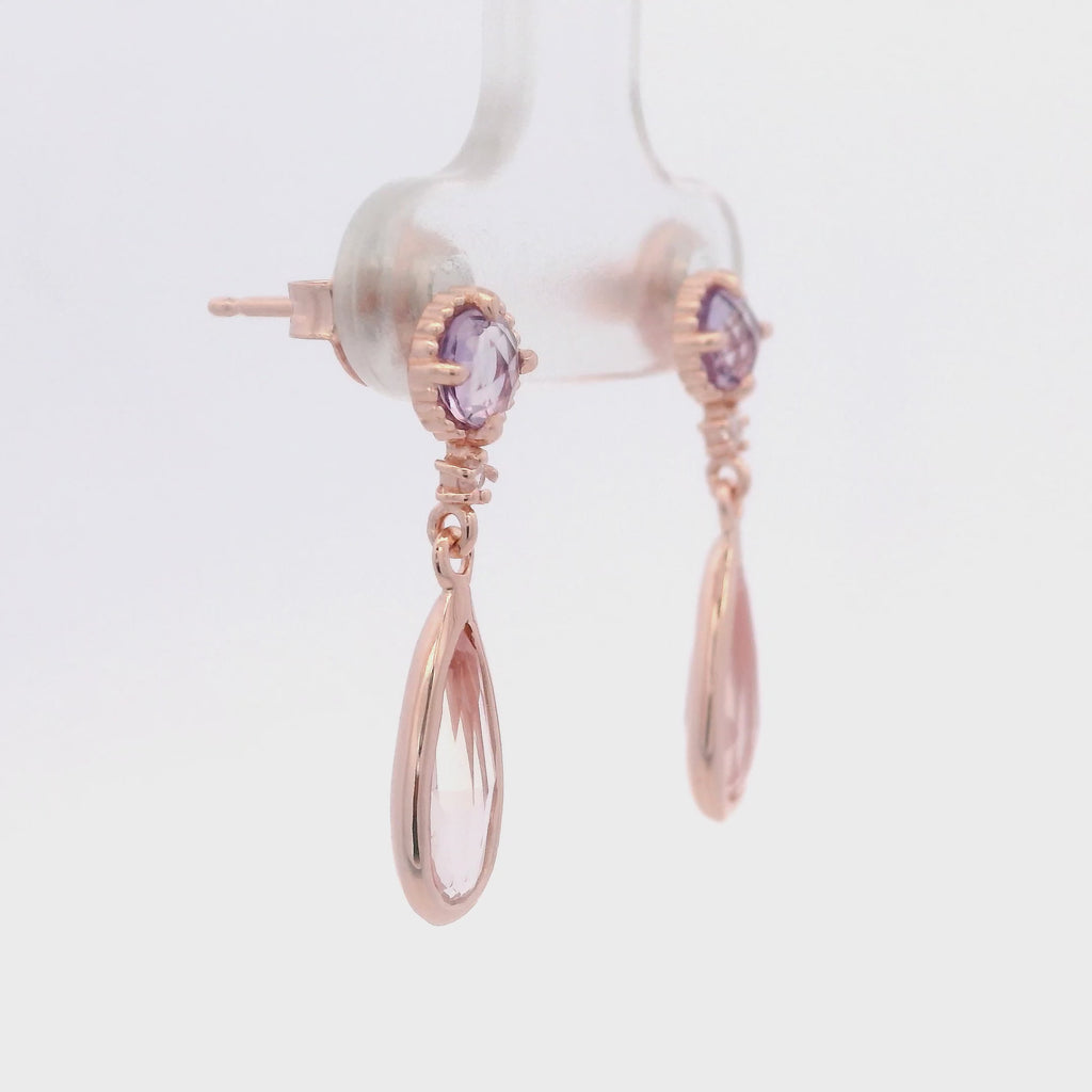 925RG STUD AMETHYST DROP ROSE QUARTZ EARRINGS