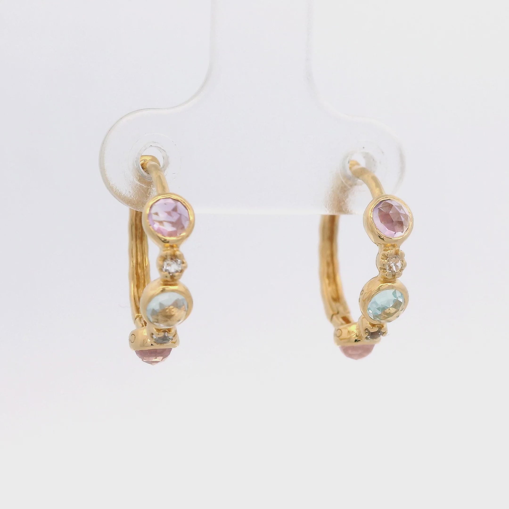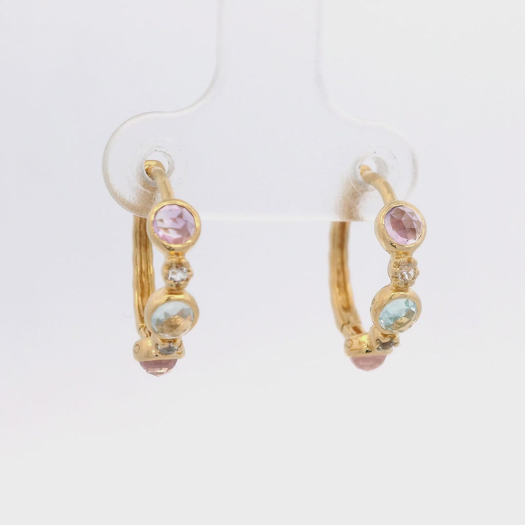 925YG 3 STONE AMETHYST TOPAZ BLUE AND TOPAZ WHITE EARRINGS