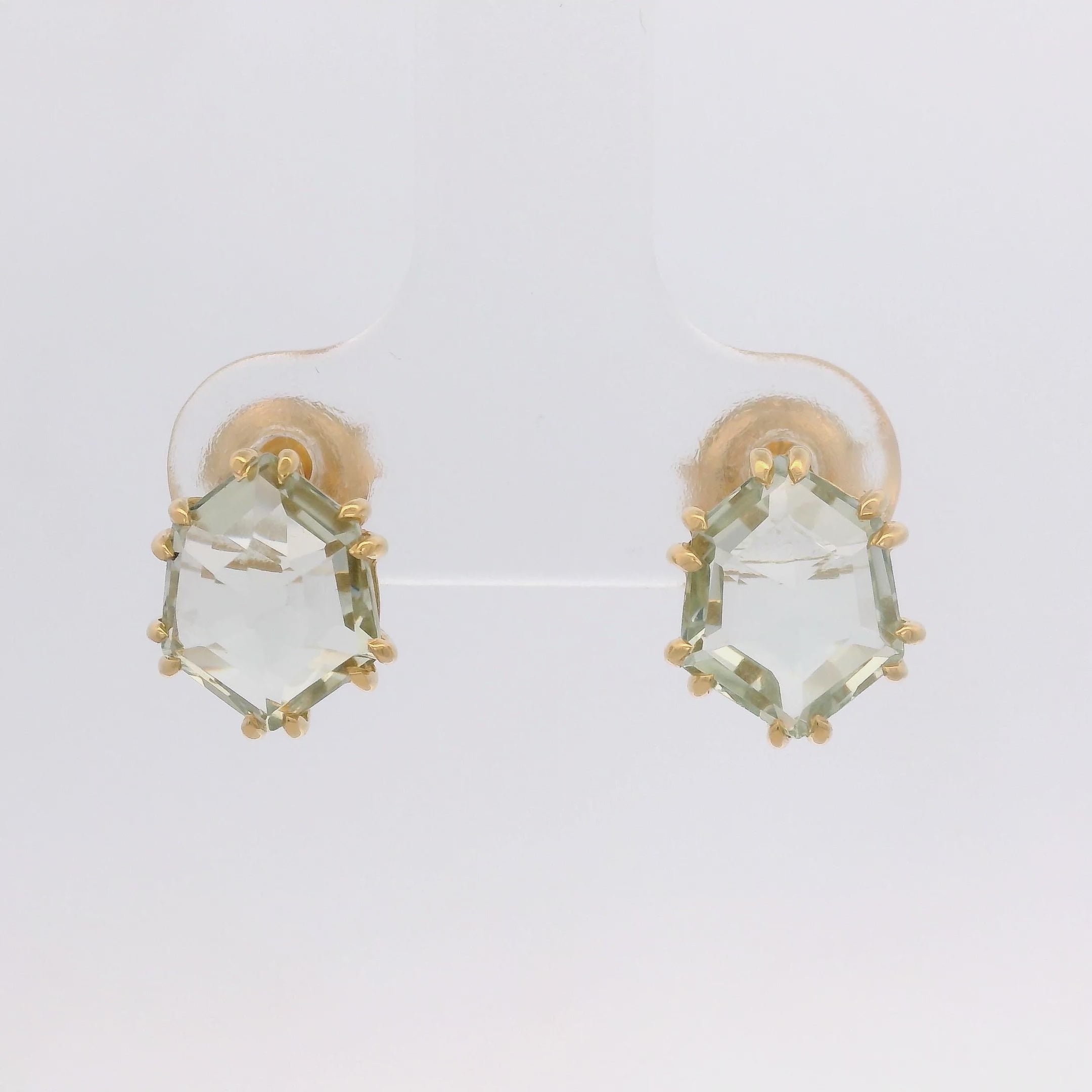 925YG HEXAGONAL AMETHYST GREEN EARRINGS