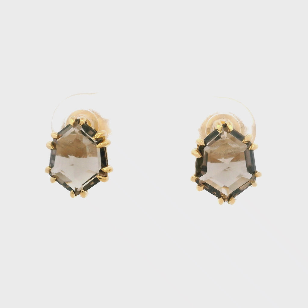 925YG HEXAGONAL SMOKY QUARTZ LIGHT EARRINGS
