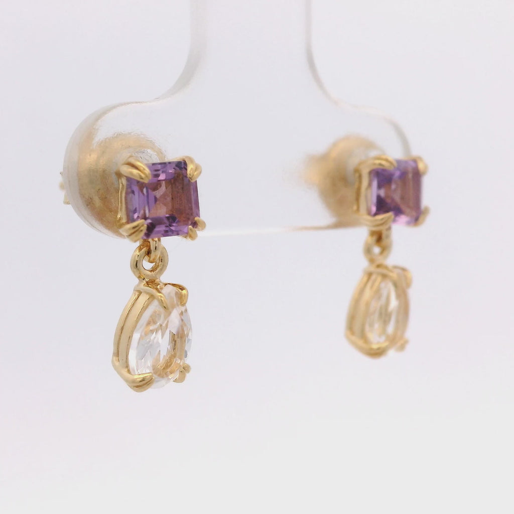 925YG STUD AMETHYST DROP OCK CRYSTAL EARRINGS